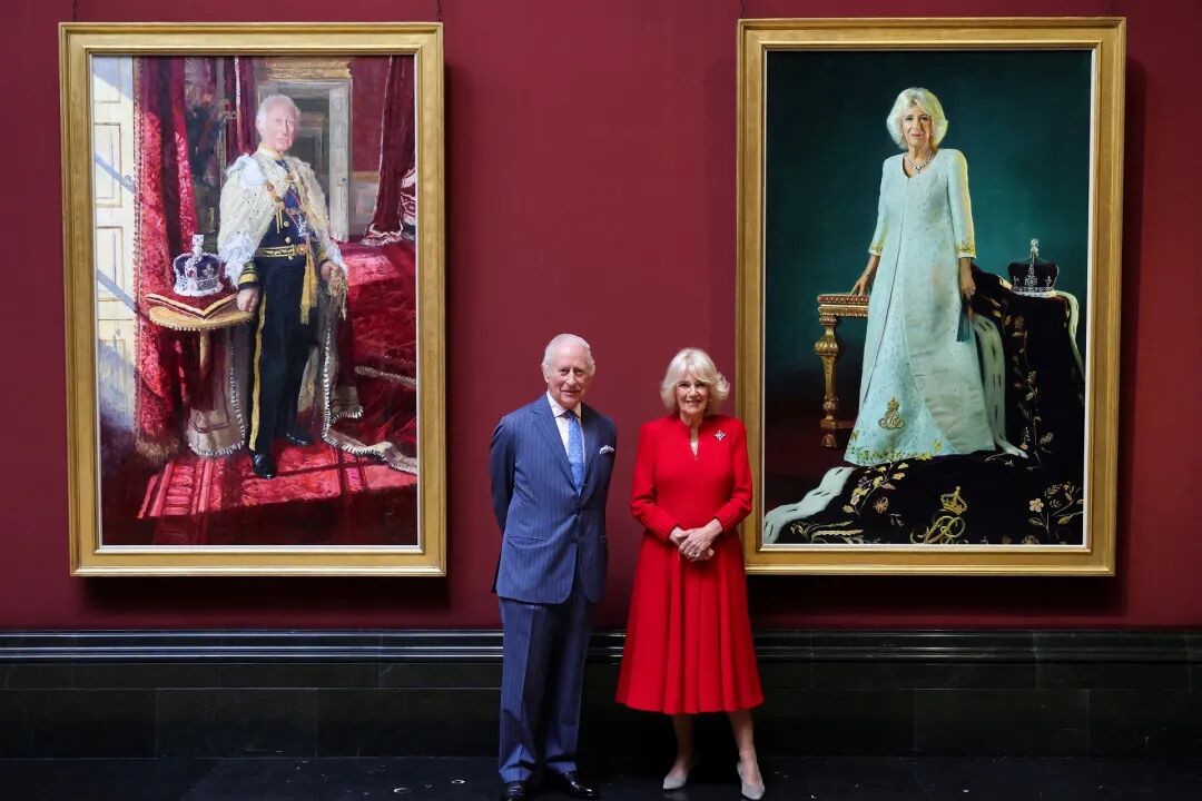 英王加冕官方肖像。英国国王查尔斯三世和卡米拉王后为官方加冕肖像画揭幕,伦敦。5月6日是英王查尔斯三世加冕2周年纪念日,英王和王后当天访问英国国家美术馆为新肖像画揭幕。这两幅肖像画分别由英国艺术家 Peter Kuhfeld 和 Paul S. Benney 绘制,画中查尔斯三世身着海军制服和皇家礼服,右手边摆放帝国皇冠,卡米拉王后身着刺绣花卉图案的象牙色丝绸礼服,左手边摆放玛丽王后皇冠。新肖像画将在伦敦国家美术馆展出至6月5日,随后移至白金汉宫王座厅永久收藏。