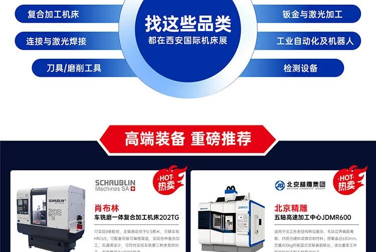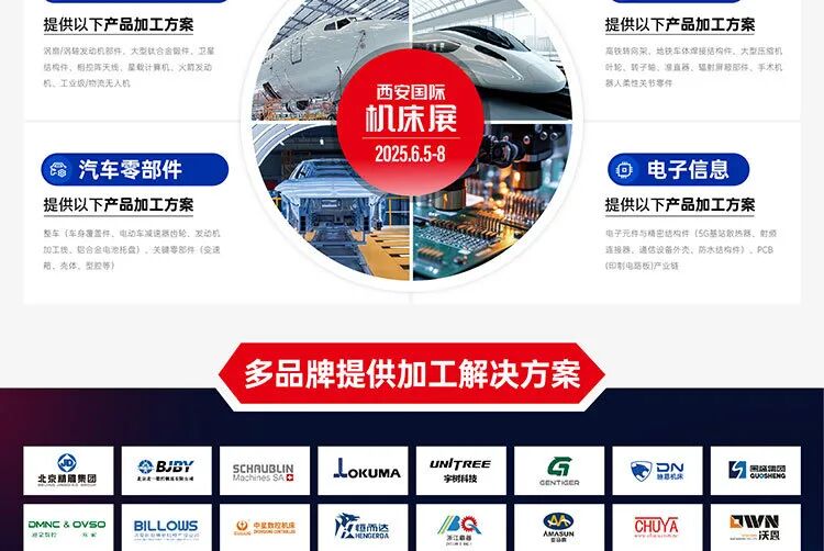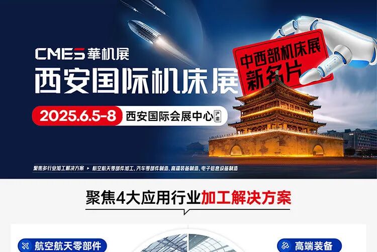 2025年6月5-8日,西安国际机床展将在西安国际会展中心(3/4/5/6 馆)盛大启幕。“西安制造” 备受瞩目,此次展会谋势而动,以 35000㎡展厅,汇聚 500 + 品牌展商,特设金属切削、金属成形等六大主题展区,致力于打造中西部极具影响力的工业会展标杆。