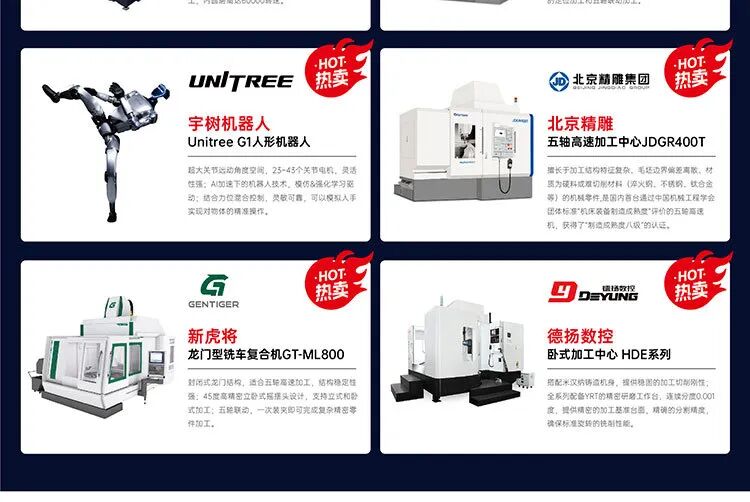 五轴、龙门、立式、卧式等加工中心;深孔钻、型材加工中心、组合机床、复合机床、雕铣机床、车床、磨床等。