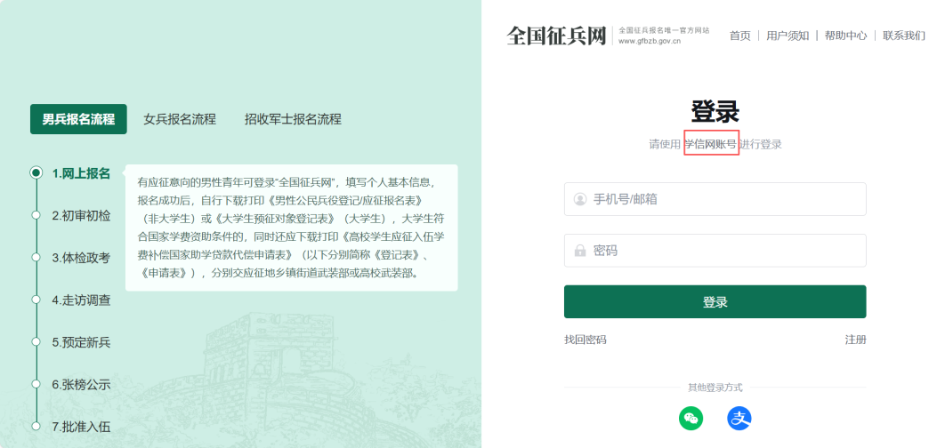 学信网账号登录全国征兵网