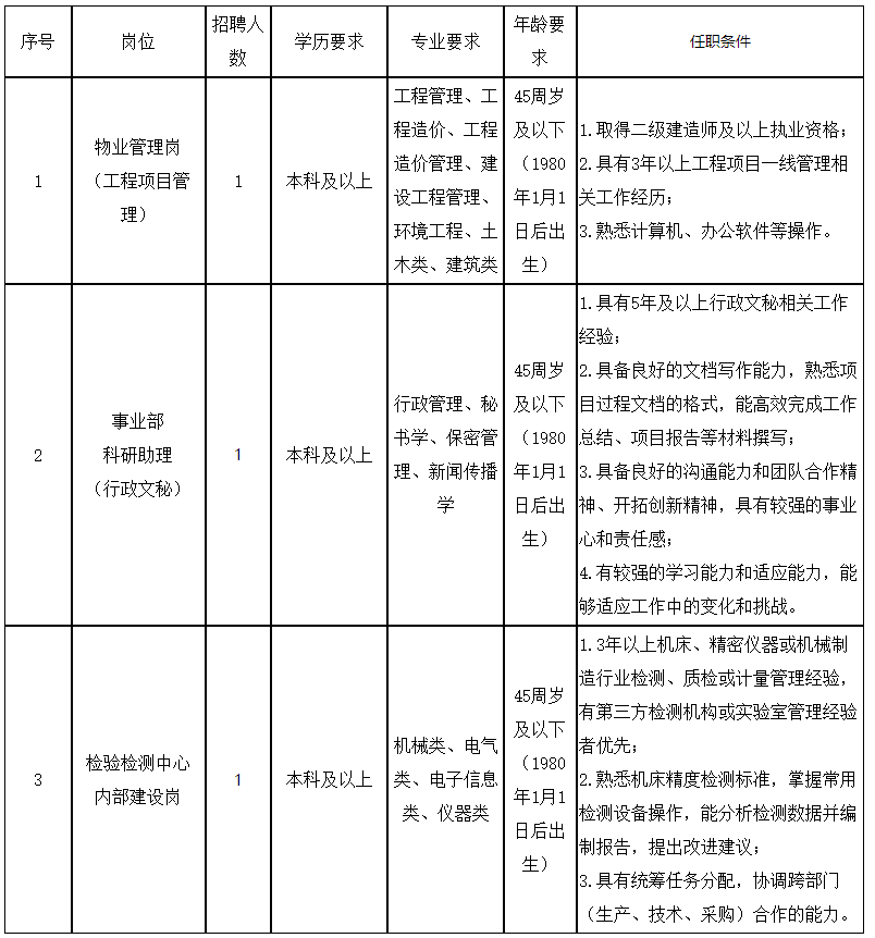 本次面向社会公开招聘工作人员3人。具体招聘岗位、人数及其他条件要求详见下表。