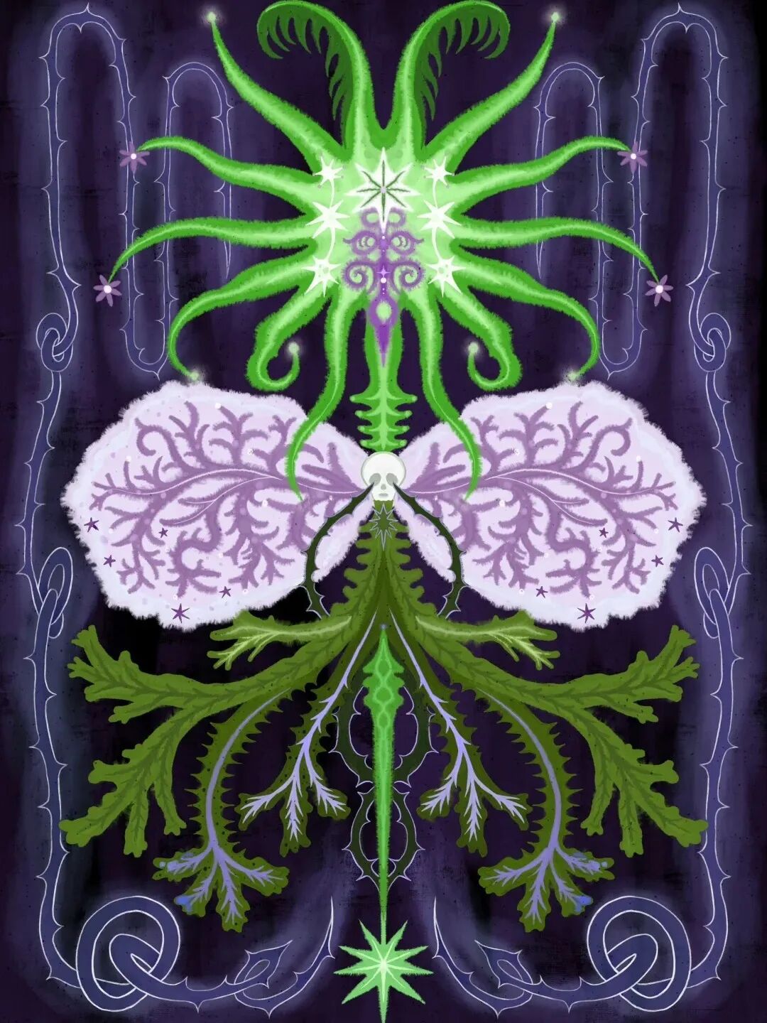 Justine Art Studio致力于艺术治疗领域与心理学,尝试将神秘学与现代主义紧密结合,使几何与生物形状链接,用抽象的符号和自由的线条暗示观众,并引发联想。探索人类生命的意义,认知自己的精神存在,物质世界与宇宙的现象。