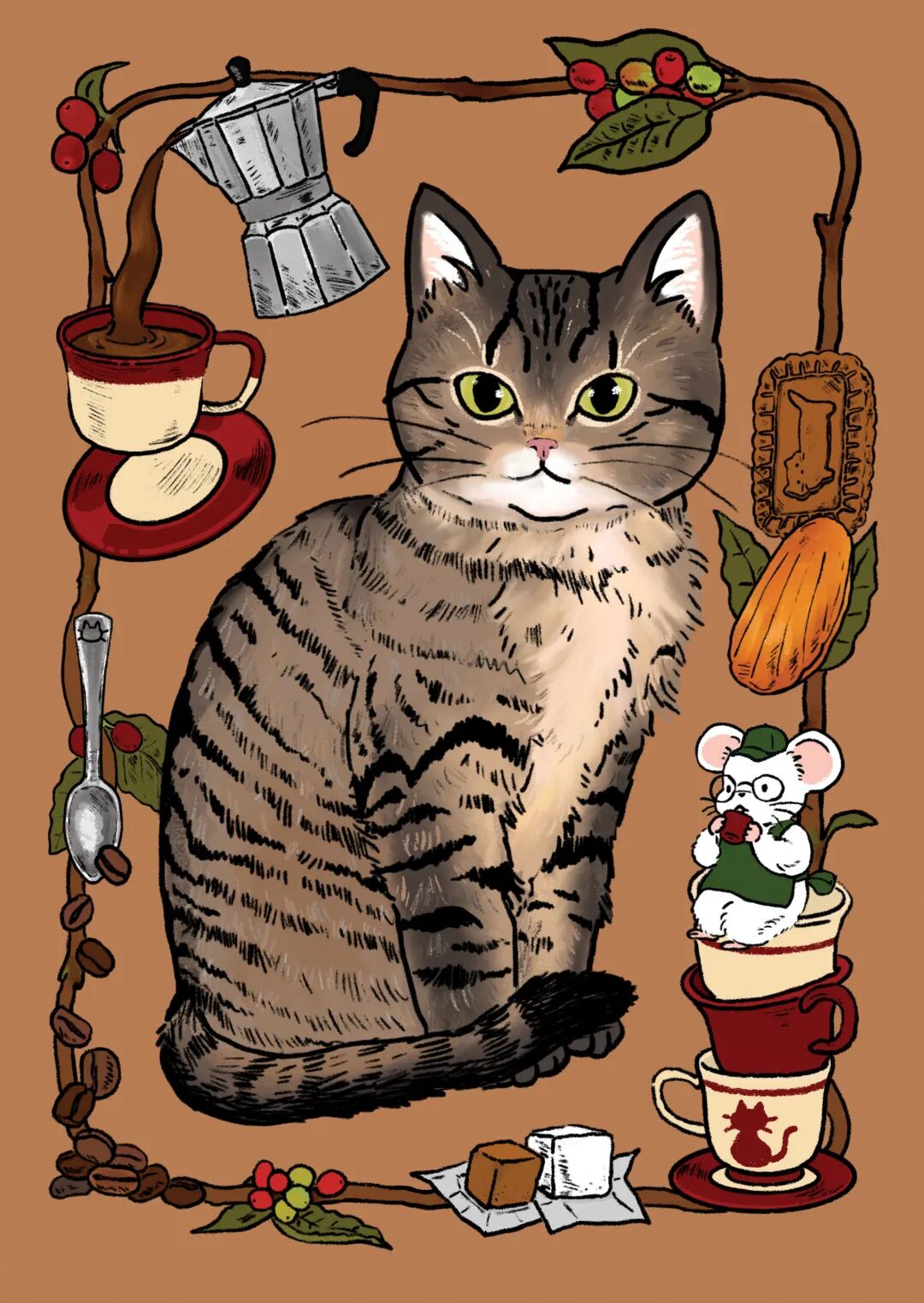 以家里两只毛孩子(吐吐和困困)为创作灵感,画温暖的小画,做治愈的文创和手作小物,愿这份源自我内心的柔软,能抵达更多人的生活,让快乐传递,让温暖蔓延~