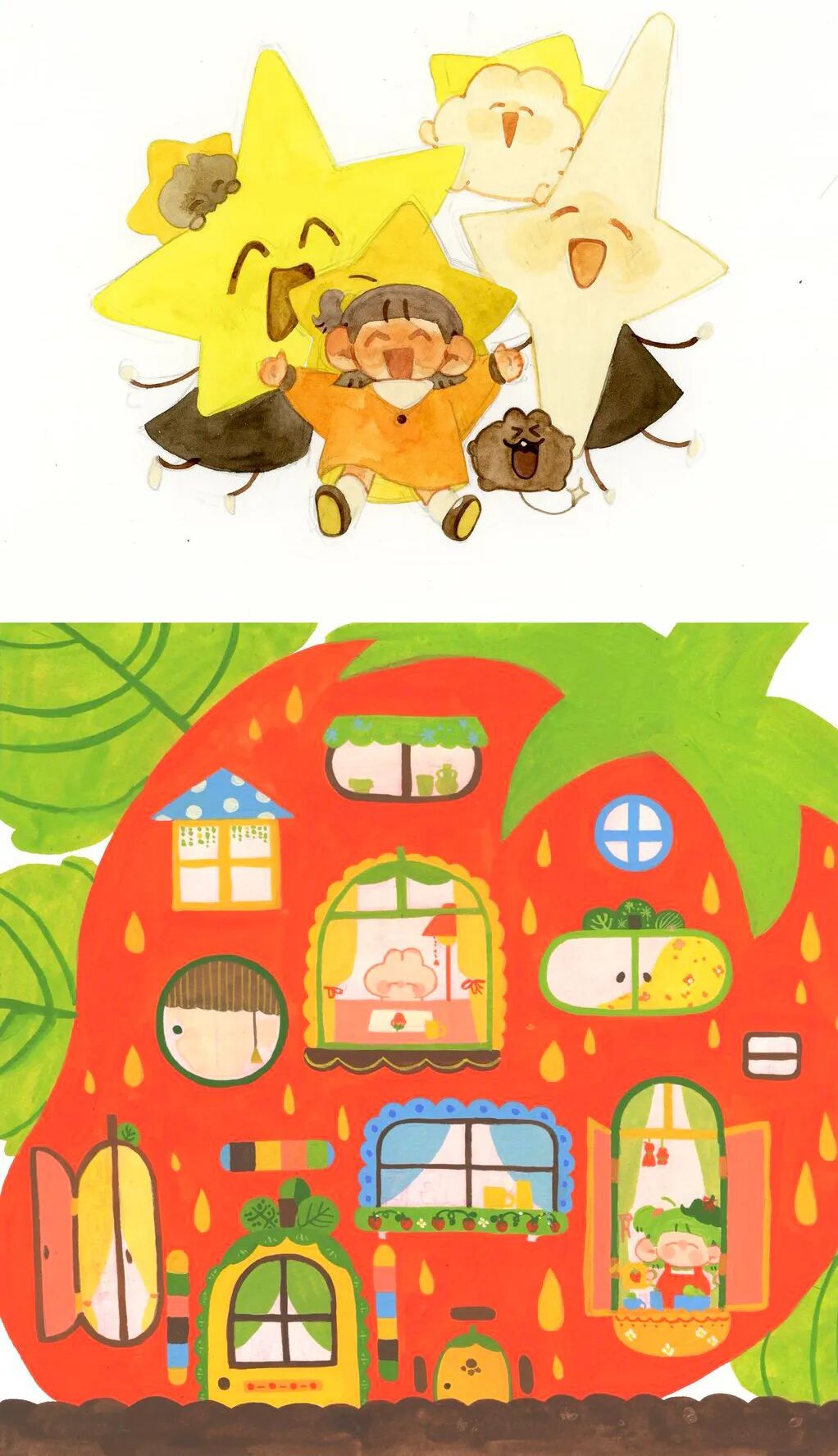 梅子不圆,名字来源于一颗充满浆汁的梅子,我喜欢收集温暖闪光的日常素材,擅长用明亮色彩和简单图形创作画面,希望把藏于生活中微小而温暖的事物通过插画展现给大家,它们像星星一样闪烁着微小的光,也像植物一样散发着生命力,治愈着每一天。