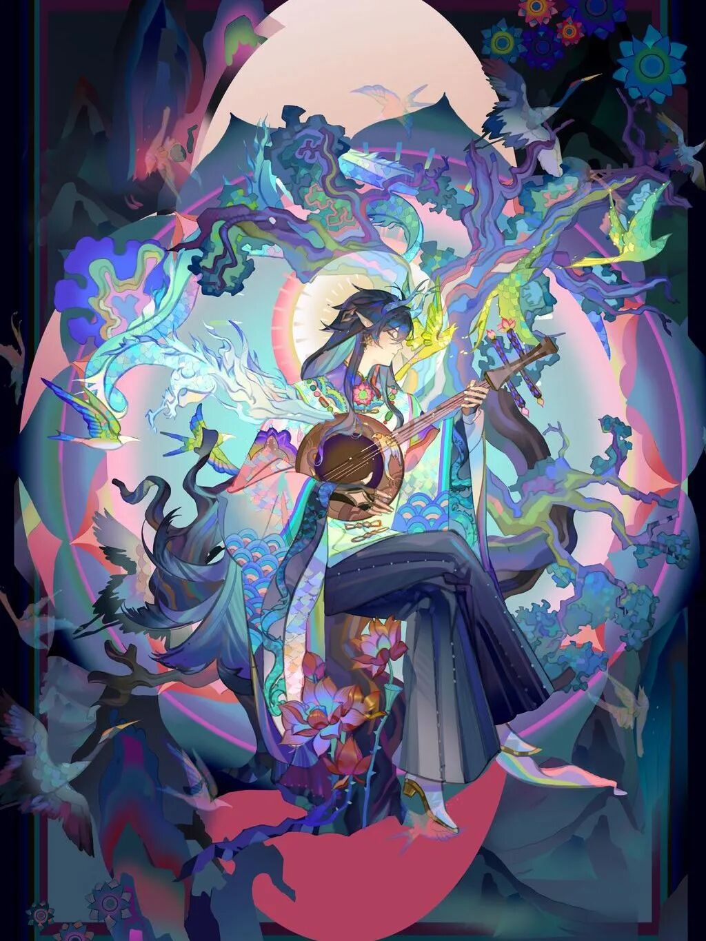插画师,卡牌艺术家。曾为第90届奥斯卡最佳影片《水形物语》和第96届奥斯卡最佳动画长⽚《你想活出怎样的⼈⽣》创作海报,《仙剑奇侠传四》《扶摇》《镜·双城》等剧集绘制概念海报。 《原神》《英雄联 盟》《王者荣耀》《二重螺旋》《倩女幽魂》等游戏合作艺术家,以细腻笔触构建《游仙》《隐世之国》系列,将东⽅神韵与奇幻想象完美结合。