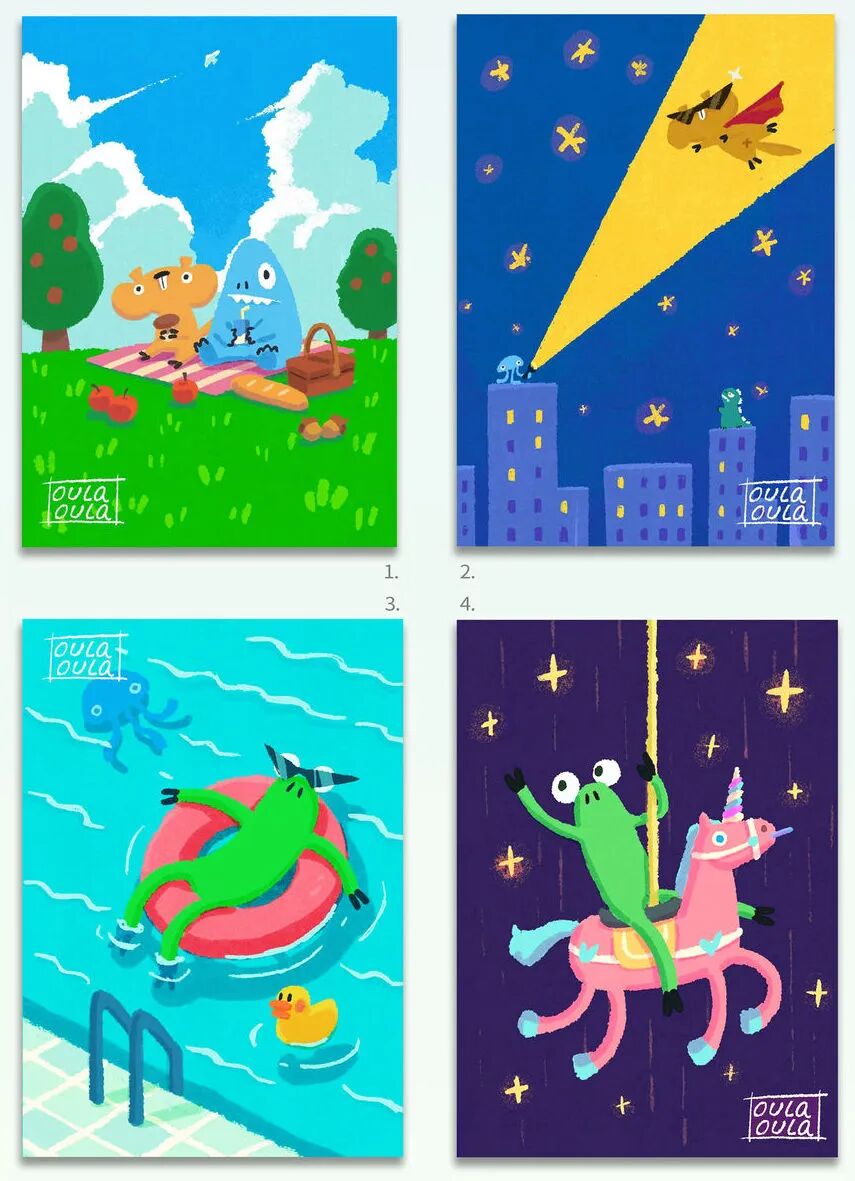oula oula —童趣治愈系IP。以雪怪青蛙等7只小动物为载体,创建的奇妙世界。“oula”即是事情搞定的“欧了!”,也是西班牙语里“hola你好”的发音。是主理人对这个小世界友好开放的美丽愿景。工作室目前以平面插画,衍生品以及手作产品活跃于艺术市场中。希望借此为大家带来快乐和松弛。