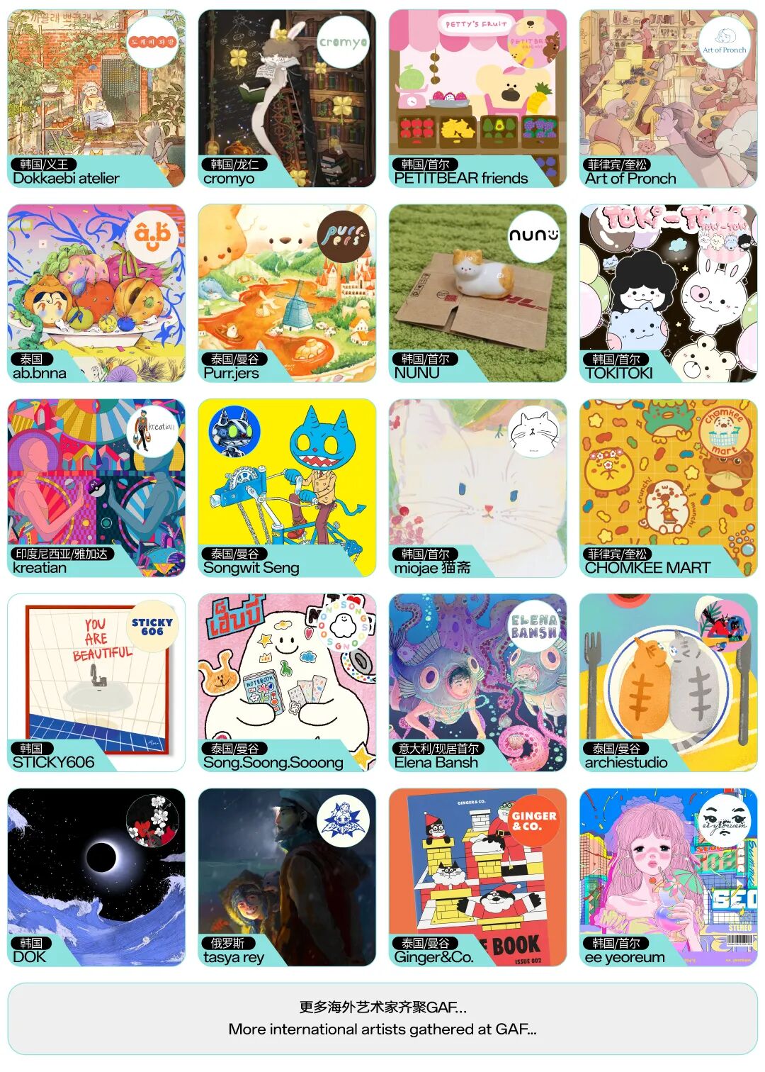 同时,本届GAF2026上海(国际)插画艺术节将迎来北美洲、欧洲、亚洲等30+个国家的200个海外展商,其中包括美国、加拿大,俄罗斯,塞尔维亚,意大利,韩国,菲律宾,泰国,新加坡,印度尼西亚等等多国艺术家与品牌加入,为展会注入更广阔的国际视野与文化张力!