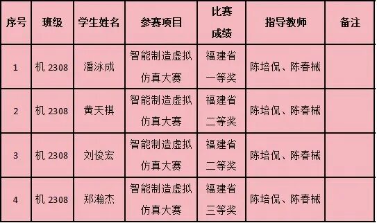 作为东道主,我校参赛的4支队伍表现抢眼,其中潘泳成同学获得了一等奖,黄天棋同学与刘俊宏同学获得了二等奖,郑瀚杰同学获得了三等奖。