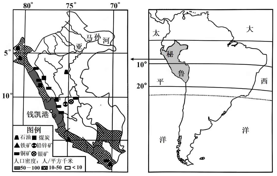 (2)秘鲁是南美洲人口数量第四的国家。读图可知该国人口分布不均衡,集中分布在 _________,秘鲁首都是______。