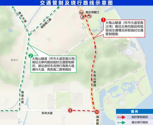 为保障灯会期间道路安全畅通,南沙公安交管部门将对以下路段实施动态交通管制: