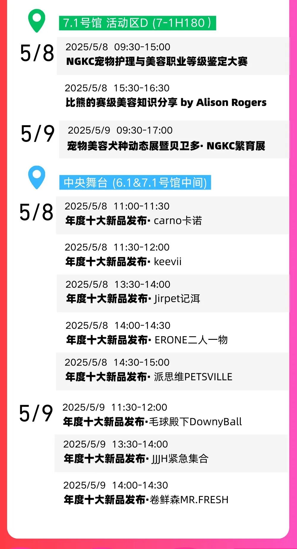 为了更好地服务观众索引,也为展商迅速匹配到合适的潜在买家,它博会在参观动线和专区设置上持续努力优化改变。2025年它博会将延续清晰的展区设置,帮助观众高效规划,把时间分配在更重要的洽谈上。保留【原装进口街区】、【宠业新势力街区】、【新国货街区】、【喵星人街区】、【宠物食品街区】、【宠物用品街区】、【宠物大健康】等大家熟悉的板块之外。新设【精致养宠生活】、【智能科技养宠】两大板块,并升级优化【小宠异宠街】和【TOPS100优选供应链】两大专区,更丰富、更精选、更有看头。