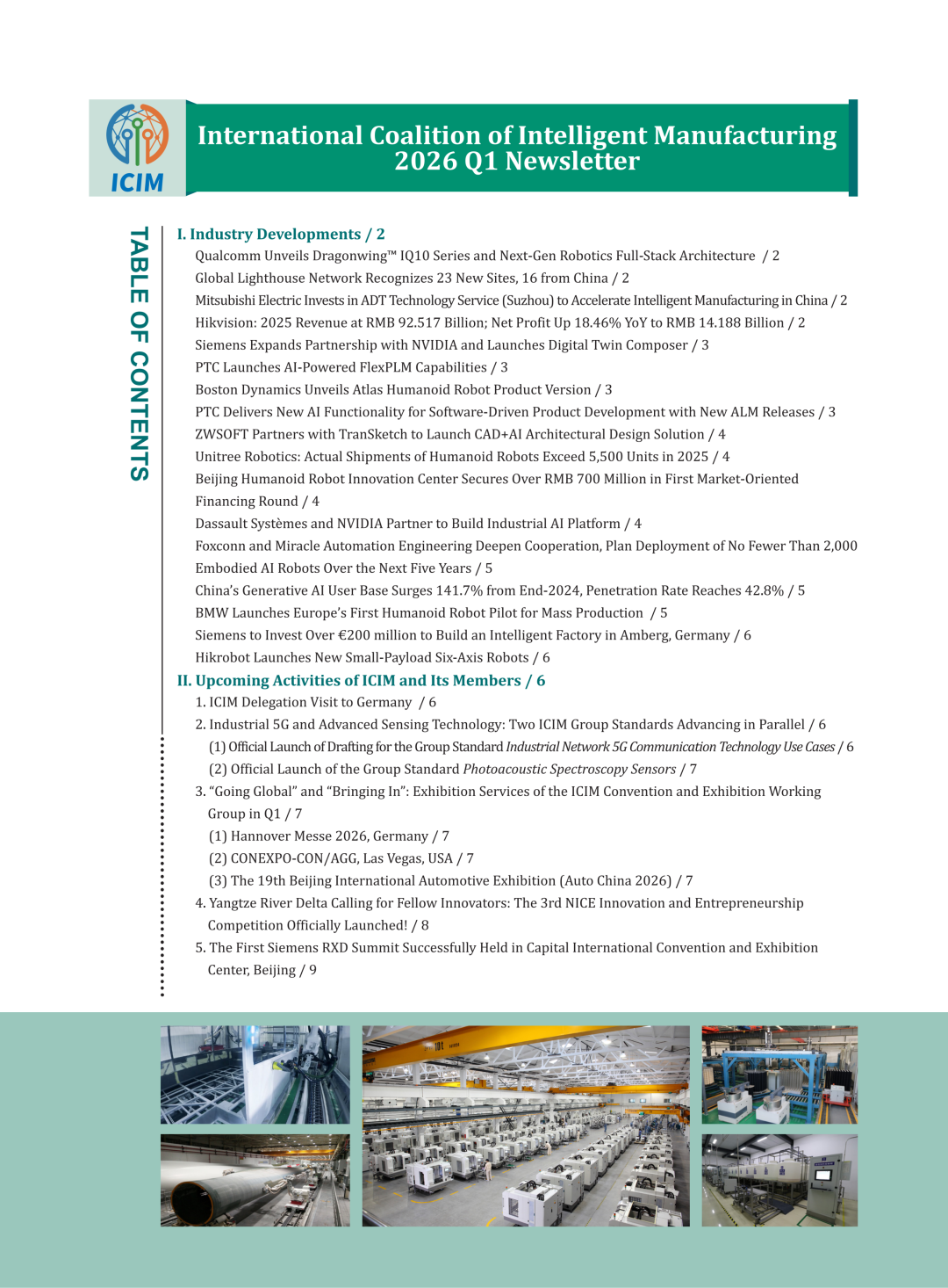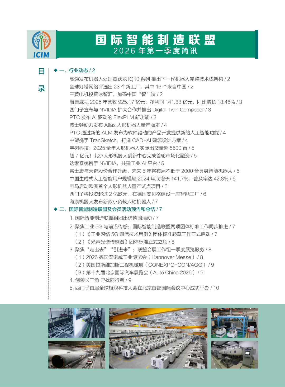 国际智能制造联盟2026年第一季度简讯已在官网发布,以下为目录,点击文末「阅读全文」即可跳转官网查看完整内容。