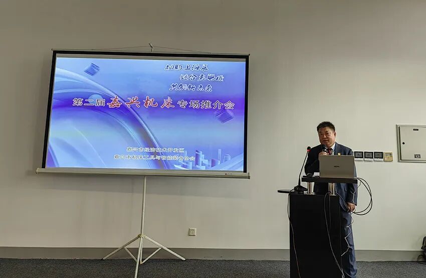 中国机床工具工业协会秘书长毛予锋、嘉兴市科协原副主席万勇等领导出席并致辞,协会秘书长徐晓华主持会议,嘉兴市经开区进行了装备产业投资环境介绍,浙江高格智能、浙江晟禧精密、德普数控(海宁)等多家本土优质企业代表现场推介,海内外采购商、行业同仁、产业链伙伴齐聚一堂,共话产业新机遇、共谋智造新未来。