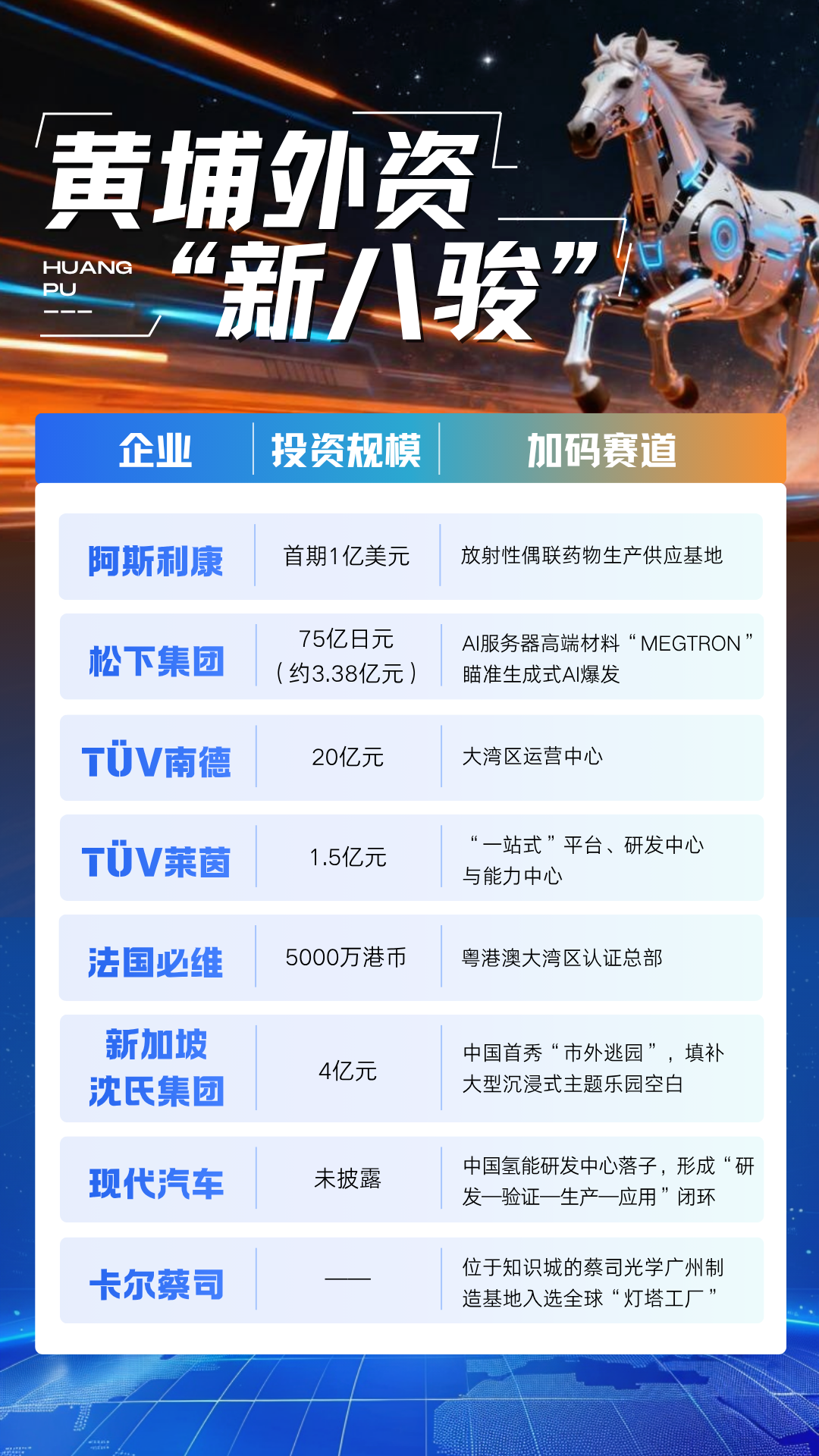 从改革开放之初的“世界500强”,到十五五开局之年的外资新八骏,变的是投资的质地——从规模扩张转向赛道卡位,从生产制造转向研发共创,从单一功能转向全链布局。不变的是黄埔作为外资首选地的底层逻辑:产业链的深度、创新的浓度、服务的厚度,共同构成了外资无法拒绝的引力场。