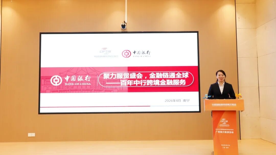 活动现场,中国银行广西区分行以《聚力服贸盛会 金融链通全球—百年中行跨境金融服务》为主题,介绍了中国银行连续五年作为服贸会银行业独家全球合作伙伴,为展会提供全周期、全方位金融保障的服务成果,分享了中国银行全球网络布局、全品类跨境金融产品、智能化服务体系等核心优势以及广西分行落地跨境电商本地结算,积极推广多边央行数字货币桥等创新实践,并表示将立足区位优势,依托服贸会平台,持续优化跨境金融服务,搭建企业跨境合作桥梁,把全球资源引入广西、助力桂企走向世界。