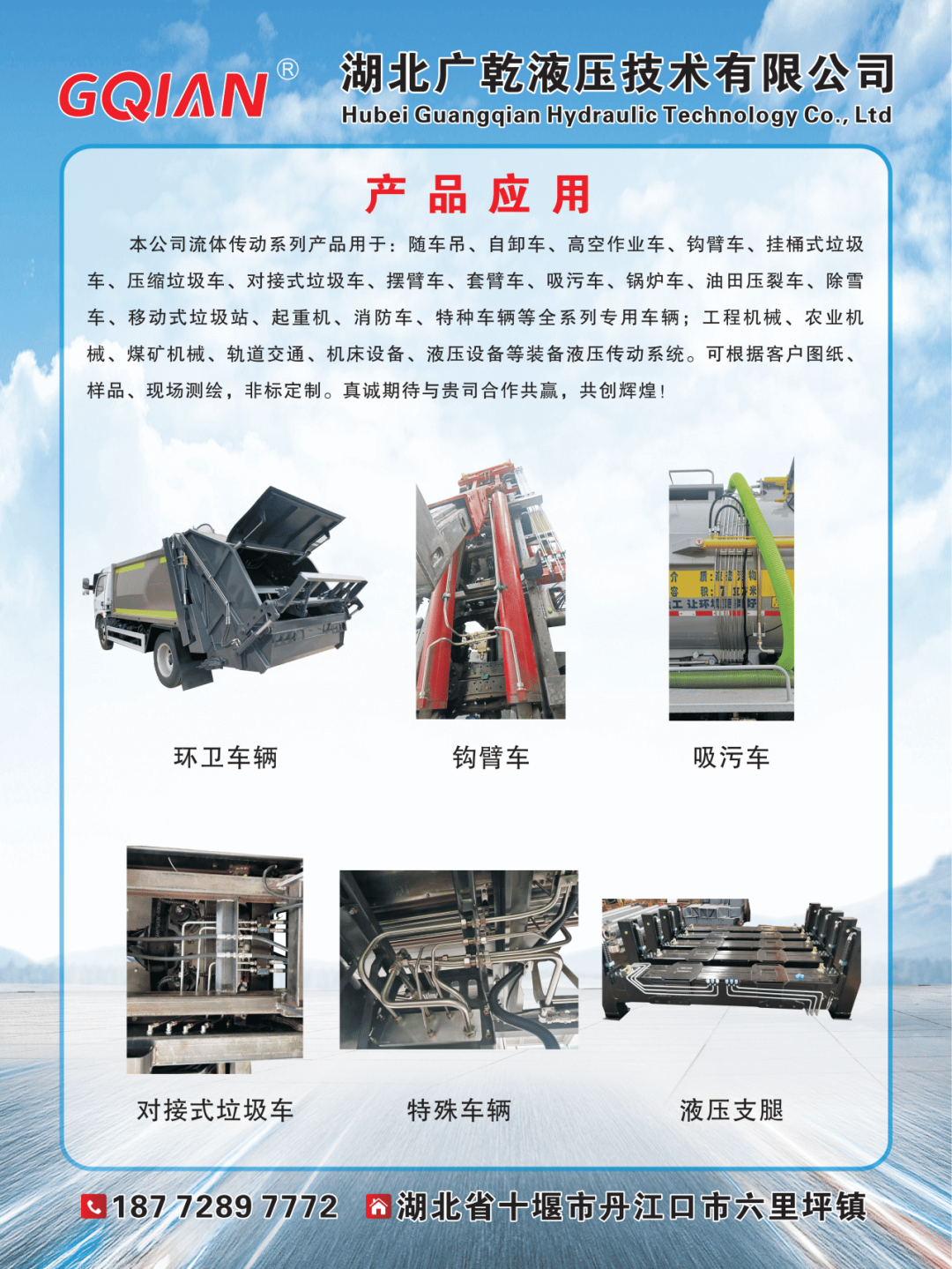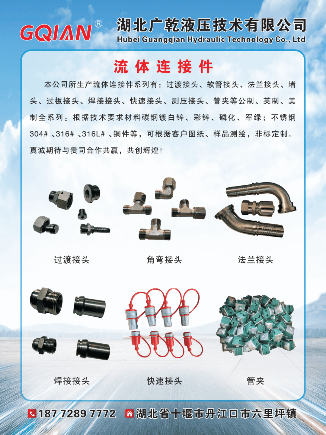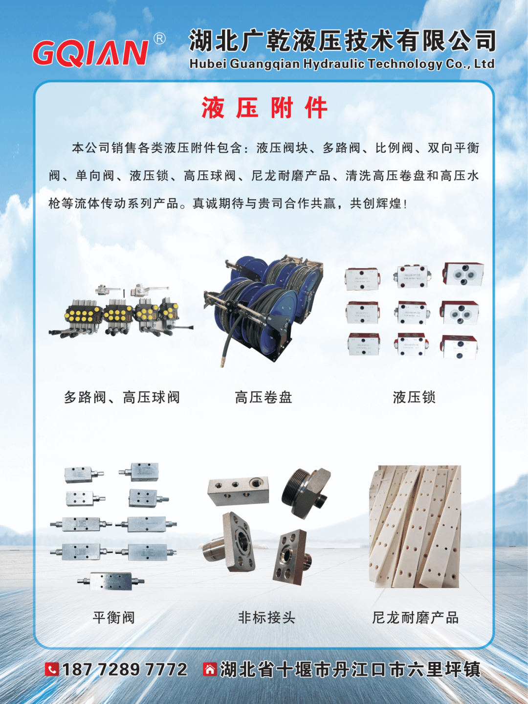 湖北广乾液压技术有限公司成立于2021年,注册资金300万元。是一家专业从事流体传动技术、高中低压橡胶软管及软管组合件、流体连接件、软管总成、硬管总成、轨道交通制动管、专用汽车配件、工程机械配件等相关液压附件的创新性企业。公司采用现代化的管理方式,以创新的营销模式,多年的技术研发实力,超强的加工能力,为广大新老用户提供最为及时、周到的服务。公司注重给客户提供优质产品,追求专业化的技术支持与服务。