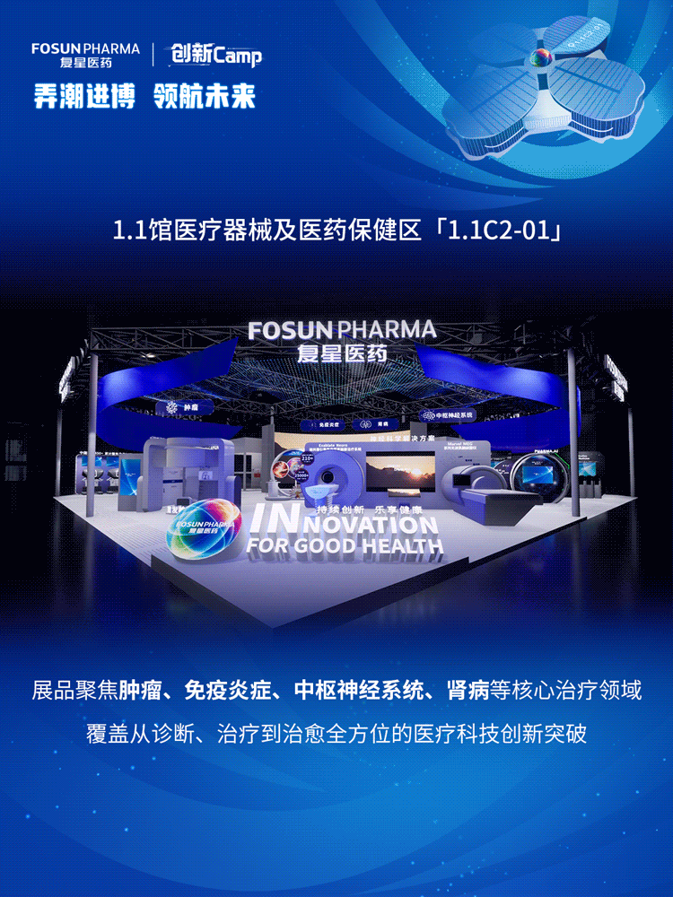 同为进博会“八年老友”的复星医药,现场集中展示了全球领先的创新药品、高端医疗器械以及诸多国际合作成果,从“进博宝宝”(通过进博会实现在中国落地投入使用的产品)到尖端医疗科技的首发首展等,产品主要聚焦肿瘤、免疫炎症、中枢神经系统、肾病等核心治疗领域,覆盖从诊断、治疗到治愈全方位的医疗科技创新突破。
