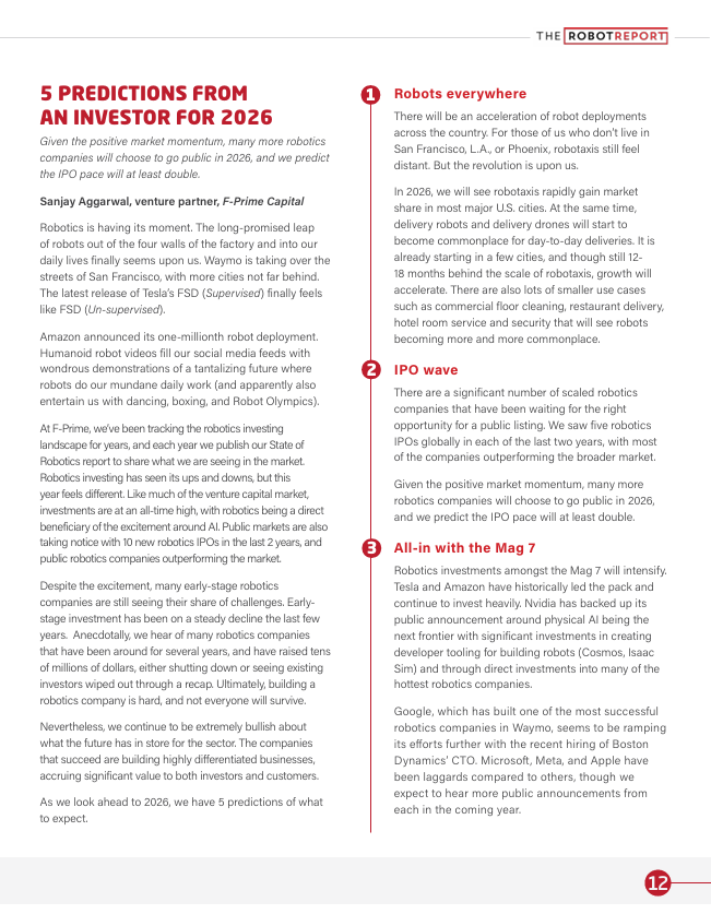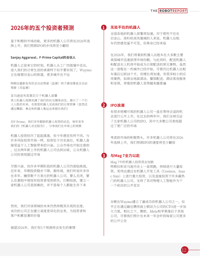“过去两年全球已有10家机器人公司IPO。鉴于积极的市场势头,2026年将有更多机器人公司选择上市,我们预测IPO速度至少翻倍。”