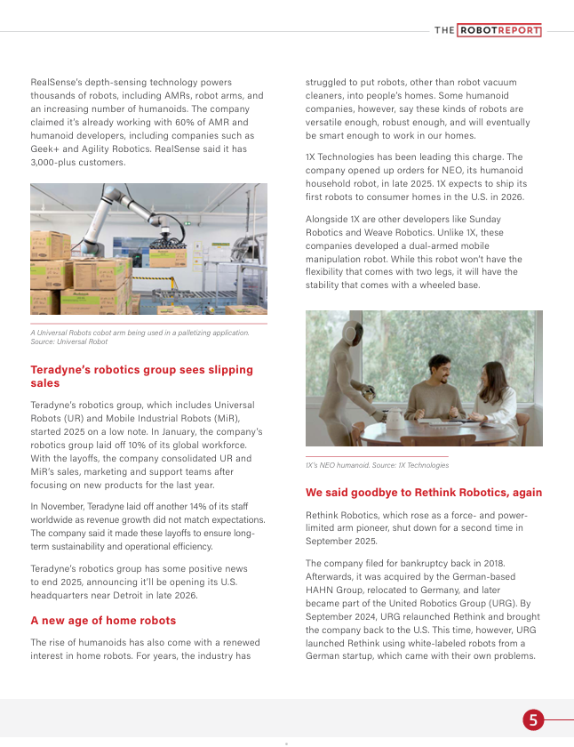 iRobot于2025年12月申请第11章破产,被中国 creditor 接管。Rethink Robotics继2018年破产后再次倒闭。Teradyne机器人部门年初裁员10%,11月再裁14%,收入增长未达预期。