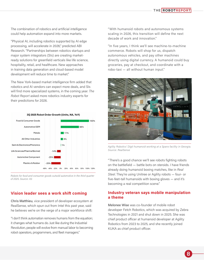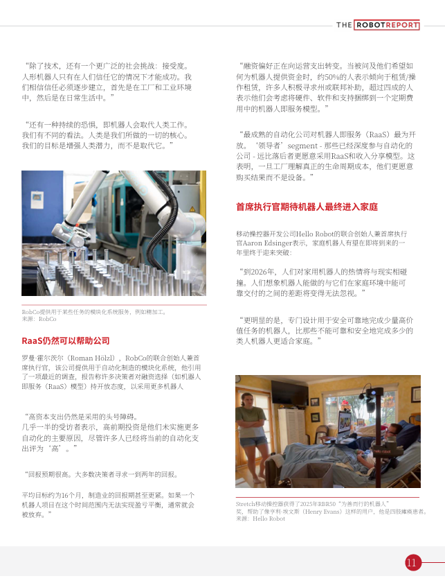从工厂到仓库,从手术室到家庭,机器人正在加速进入人类生活的各个角落。但The Robot Report这份报告最核心的洞察不是技术参数,也不是市场规模,而是一个关于“人”的结论: