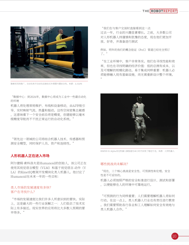 “2026年不会有人形机器人在人们家中自主做有用工作。 最有效的人形机器人部署将在工业领域,与理解技术真实状态的合作伙伴一起。这些客户不期望人形机器人一夜之间超越专用机器人,而是押注于其多功能性、劳动力连续性和长期能力增长。”