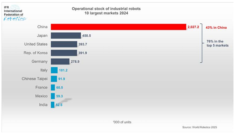 A3总裁Jeff Burnstein强调:“机器人不是来抢工作的,而是来填补劳动力缺口的。”中国使用全球43%的工业机器人,美国仅约10%,而美国制造业面临严重的工人短缺。机器人让美国工厂能够回流,同时创造更高技能的岗位。