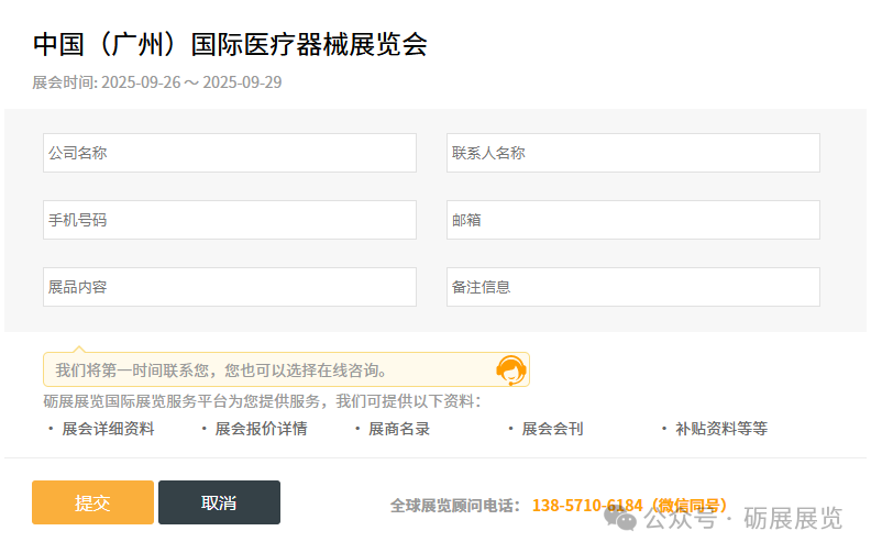 中国广州国际医疗器械展CMEF每年吸引全球医疗器械企业连续参展,来自政府采购机构、医院买家及经销商代理商等专业观众到场参观采购及交流体验。同时CMEF主办方先后培育出ICMD(中国国际医疗器械设计与制造技术展览会)、CMEF Congress、CMEF Imaging、CMEF IVD、CMEF Indonesia、CMEF·北京、中国智慧健康展、北京国际康复及个人健康博览会等颇具行业影响力的系列子品牌,全面助力行业迈向智能化医疗新时代。
