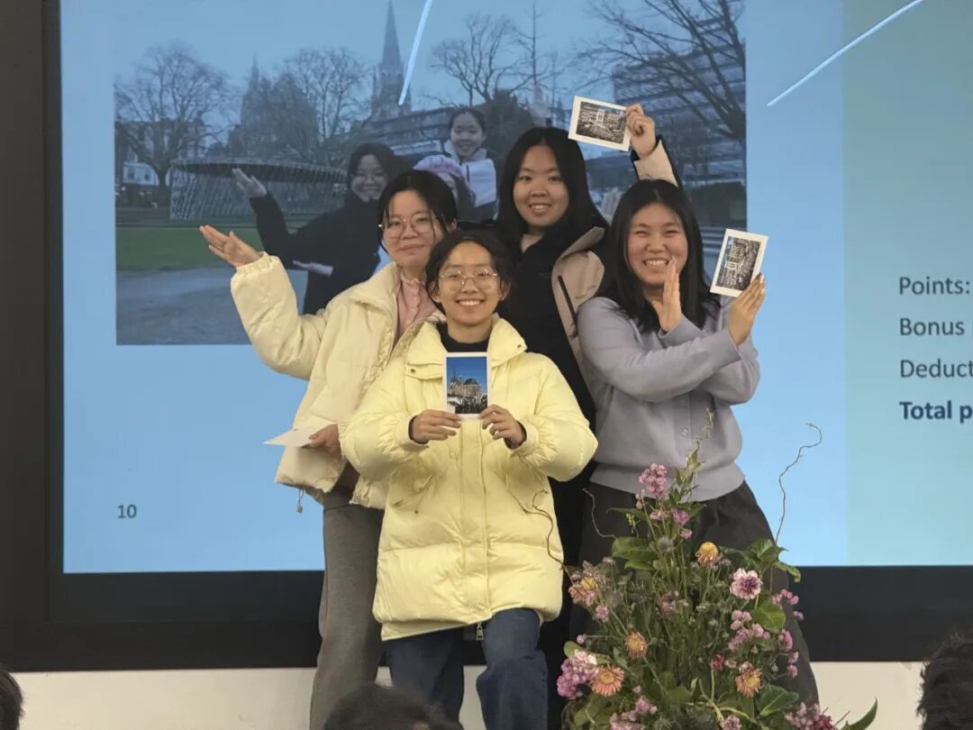 经过两周充实的课业学习与丰富的文旅体验,2月6日上午,同学们迎来课程考试,以扎实的作答验收此次学习成果。下午,结业仪式在轻松温馨的氛围中举行,老师们通过一张张照片,带领大家回顾初到亚琛的City Rally活动,为表现突出的小组颁发纪念奖品;校方为每位学员颁发结业证书,并赠送首日合影留念,同学们在照片背面签名留言、互道珍重,为这场跨国学习之旅画上圆满句号。