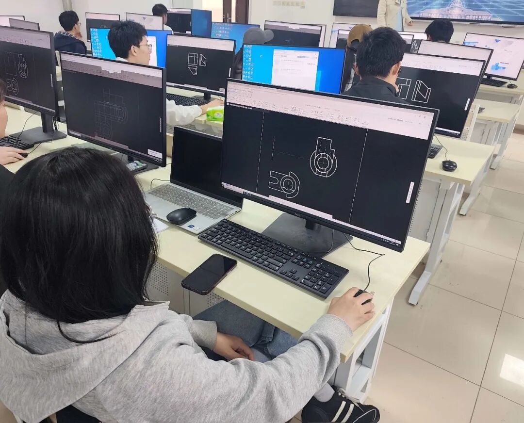 本次选拔赛严格对标国家标准,依托国产工业软件,设置“投影基础与构型”“产品信息建模”两大竞赛模块,全面考查学生的制图规范、三维建模、虚拟装配及工程图表达能力。竞赛内容深度融入企业真实生产任务,充分检验学生运用专业知识技能分析和解决复杂工程问题的岗位核心能力。学院高度重视赛事组织工作,打造“校赛-市赛-国赛”三级竞赛体系,选派专业教师对参赛学生进行多轮线上线下指导,鼓励同学们以赛促学、锤炼匠心,在实战中提升专业技能。