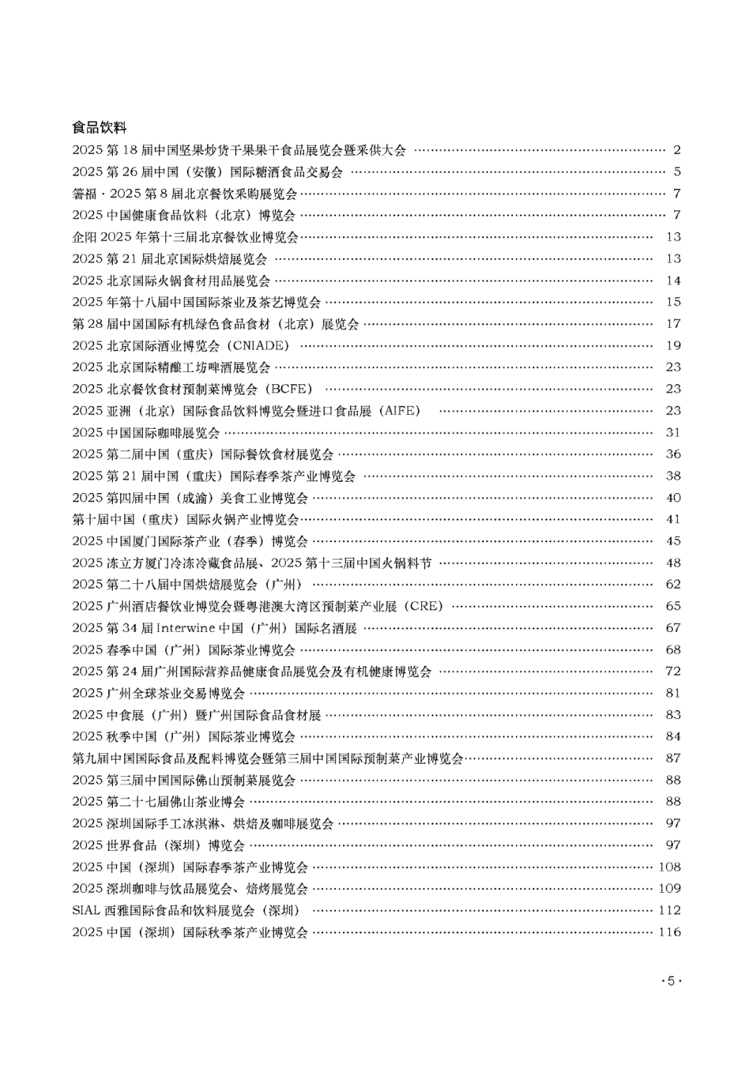 《中国博览会和展览会2025》是由中国国际贸易促进委员会编写的年度报告,汇总了2025年在中国举办的各类经贸类展览会项目信息。这份报告为中外企业提供了重要的参考,帮助他们了解中国市场的主要展会动态,从而更好地规划参展和观展活动。以下是对这份报告的核心内容解读:• 背景:自1995年起,中国国际贸易促进委员会每年都会编印《中国博览会和展览会》,以中英文对照形式发布当年在中国举办的主要经贸类展览会项目信息。• 目的:为中外企业提供重要的参考,帮助他们了解中国市场的主要展会动态,更好地规划参展和观展活动。• 展会类型:报告限定为经贸类展览会,不包含纯文化、人才招聘等其他公共展示活动及小型展销会。• 覆盖范围:汇总了2025年中国32个省区市及香港、澳门特别行政区共80余个城市举办的近1500场重点、热点经贸类展览会项目信息。• 数据内容:包括展览会名称、举办时间、举办地点、主承办机构、展出内容、联系方式等。• 主要渠道:各地方和行业贸促会、展览主承办机构、展览馆报送以及国内公开的官方媒体(网络及纸媒)自主采集。• 数据核实:通过多种渠道对展览会项目信息进行交叉比对核实,但因筹备过程中可能出现的调整,仍存在不确定性。• 不确定性:截至出版时,部分展览会尚未确定相关信息,存在日期、地点等调整的可能性。• 信息变更:展览会在筹备过程中可能出现增加或取消的情况,使用者需与主承办方联系核对相关信息。• 发布形式:报告以印刷版和电子版形式发布,并提供展览会项目的在线实时查询。• 查询渠道:可通过中国贸促会官方网站()或中国贸促会展览公共服务网(exhibition.ccpit.org)下载与查询。报告详细列出了2025年在中国举办的各类展览会,涵盖了多个行业,包括但不限于:• 综合类:如BEYOND国际科技创新博览会、中国国际服务贸易交易会等。• 农林牧渔:如国际乡村发展创新博览会、中国福州国际渔业博览会等。• 食品饮料:如中国坚果炒货干果果干食品展览会、中国健康食品饮料(北京)博览会等。• 纺织服饰:如北京国际服装供应链博览会、中国厦门国际纺织服装供应链博览会等。• 皮革鞋包:如中国(晋江)国际鞋业博览会、广州国际鞋机鞋材皮革工业展等。• 妇婴用品:如京正·北京国际孕婴童产品博览会、广州国际婴童及玩具博览会等。• 美容美发:如合肥国际美博会、北京国际美容化妆品博览会等。• 礼品玩具及宠物用品:如北京国际礼品、赠品及家庭用品展览会、广州国际宠物用品展览会等。• 珠宝首饰:如中国国际珠宝展、上海国际珠宝展览会等。• 生活用品:如中国国际日化产品原料及设备包装展览会、中国厦门国际生活用纸展览会等。• 酒店用品:如广州酒店餐饮业博览会、上海国际酒店及餐饮业展览会等。• 婚庆用品:如上海国际婚纱礼服时装周、中国(上海)国际婚纱摄影器材展览会等。• 办公用品:如北京国际档案信息化展览会、广州国际纸展等。• 教育装备:如北京国际幼教用品及幼儿园配套设备展览会、广东教育装备展览会等。• 劳保用品:如郑州劳动保护用品展览会、山东劳动安全防护用品展览会等。• 文体娱乐:如澳门国际旅游(产业)博览会、北京国际户外露营展等。• 健康养老:如北京国际健康产业博览会、中国国际养老服务业博览会等。• 医疗及制药设备:如中国国际医疗器械展览会、北京国际口腔设备材料展览会等。• 汽车:如中国国际汽车维修检测诊断设备、零部件及美容养护展览会、上海国际汽车工业展览会等。• 船舶和轨道等交通:如亚洲游艇展、上海国际轨道交通技术展览会等。• 光电照明:如光电子产业博览会、厦门国际照明展览会等。• 计算机通信及电子设备:如中国国际信息通信展览会、北京国际半导体展等。• 仪表仪器:如中国国际科学仪器及实验室装备展览会、北京国际分析生化仪器及实验室展览会等。• 冷暖设备:如甘肃(兰州)暖通展览会、广州国际冷链产业博览会等。• 泵阀管道:如中国国际管道会议、广东国际泵管阀展览会等。• 五金工具:如中国国际五金电器博览会、上海国际五金展览会等。• 工业机械:如中国国际机床展览会、北京国际汽车零部件博览会等。• 工程机械:如中国国际水泥技术及装备展览会、北京国际海洋工程技术与装备展览会等。• 农业机械:如中国(北京)数字农业装备与技术博览会、中国(重庆)国际农业机械展览会等。• 食品加工设备:如中国国际大豆食品加工技术及设备展览会、中国奶业大会暨中国奶业展览会等。• 采矿及设备:如中国国际石油石化技术装备展览会、北京国际煤炭采矿技术及设备展览会等。• 电力及新能源设备:如中国国际氢能及燃料电池产业展览会、北京国际天然气技术装备展览会等。• 节能环保:如中国国际新能源和节能环保产业博览会、北京国际水处理展览会等。• 化工产品:如中国国际塑料橡胶工业展览会、广州国际塑料橡胶及包装展览会等。• 高新材料/技术:如中国国际电磁兼容与微波暨测试测量技术交流展览会、北京国际雷达展览会等。• 其他设备/材料:如中国国际视听集成设备与技术展、北京国际摩托车展览会等。• BEYOND国际科技创新博览会:涵盖四大主题,包括影响力科技、生命科学、新基建、智慧城市与生活、未来