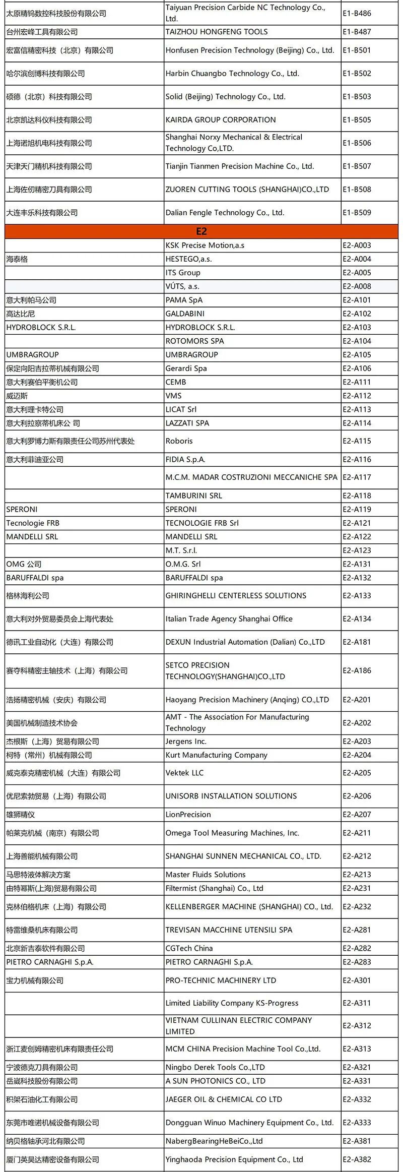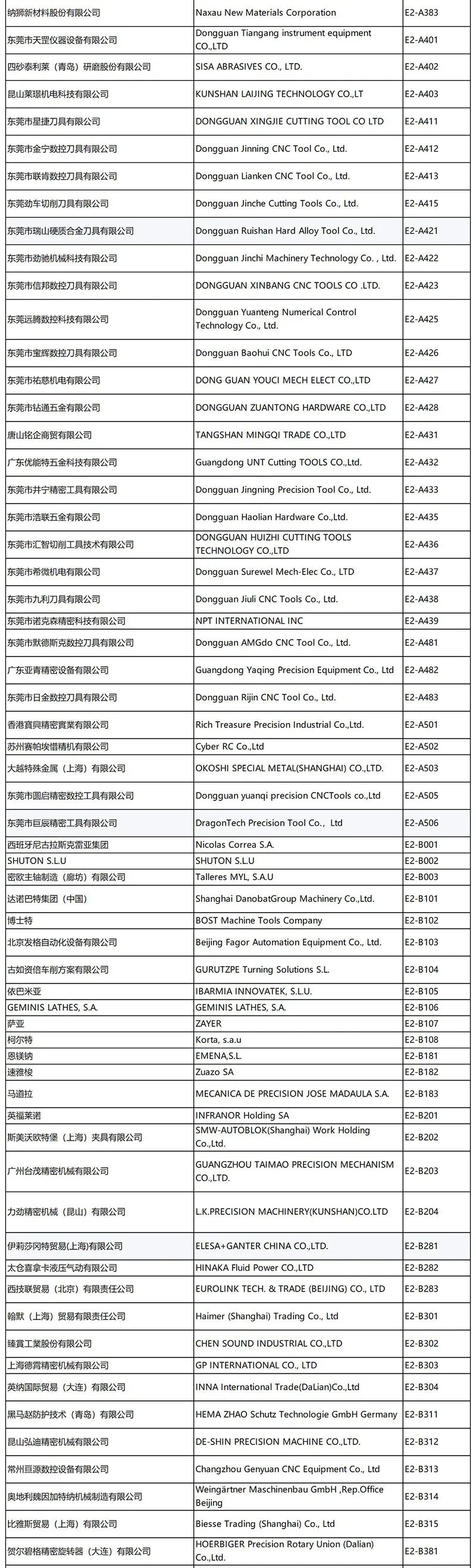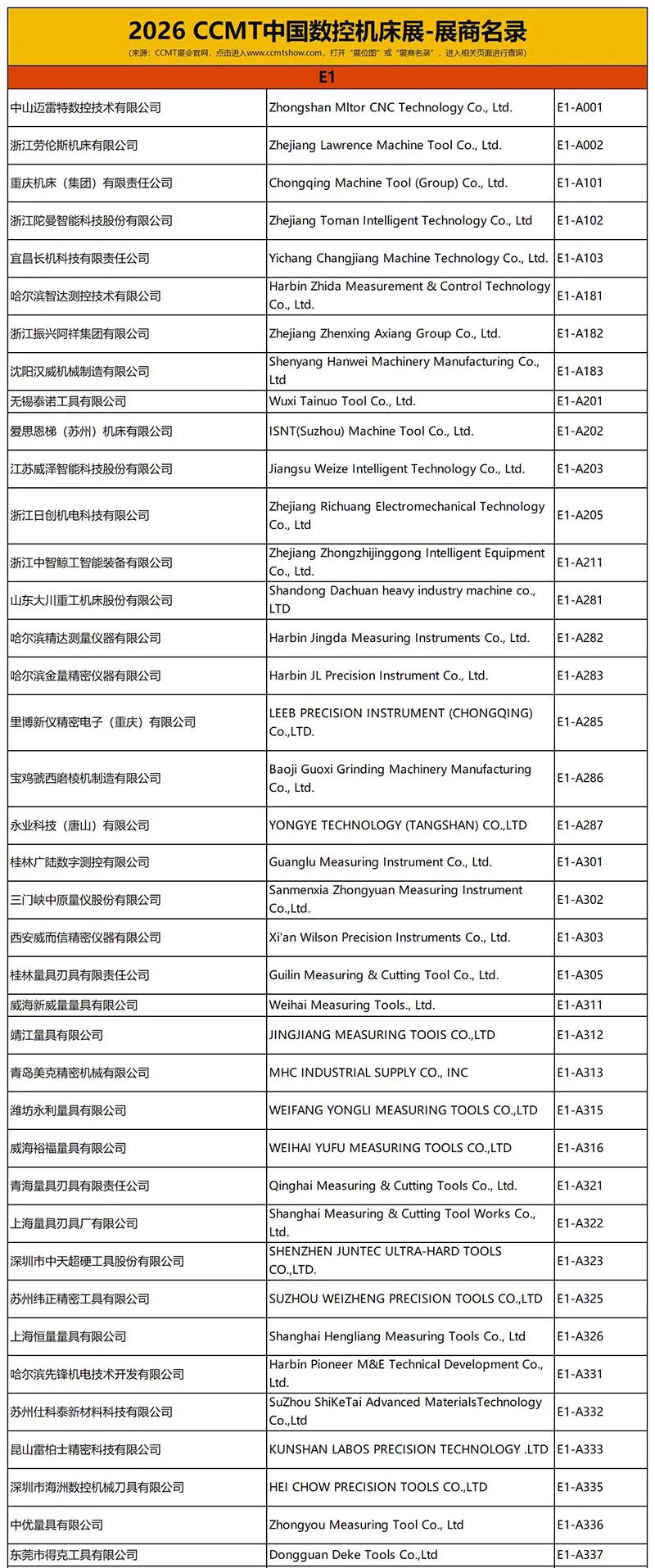 CCMT 2026部分展商名单及展位号
