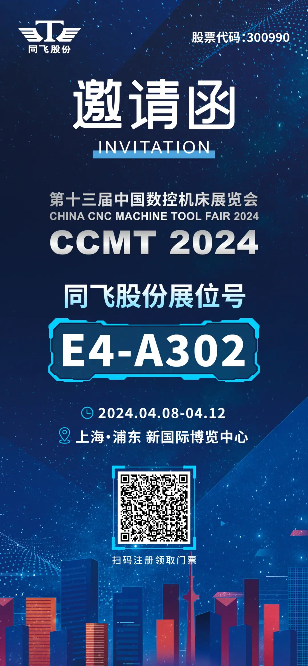 2024年4月8日-12日CCMT 2024 第十三届中国数控机床展览会将在上海浦东新国际博览中心举办,作为智能装备制造行业温控专家——同飞股份,将盛装亮相于此次展会。在此,我们诚挚地邀请您莅临E4-A302同飞展位指导与交流,共享这场全球制造业的盛典。