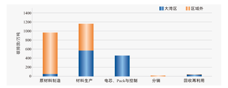 从全生命周期视角看,大湾区锂离子电池产业已形成完整产业链,涵盖原材料制造、材料生产、电芯与Pack制造、分销及回收再利用五个核心阶段。2024年大湾区电化学储能产业带动上下游全产业链产生碳排放2625.51万吨,其中区域外碳排放(1516.41万吨)占比高于区域内(1109.10万吨)。