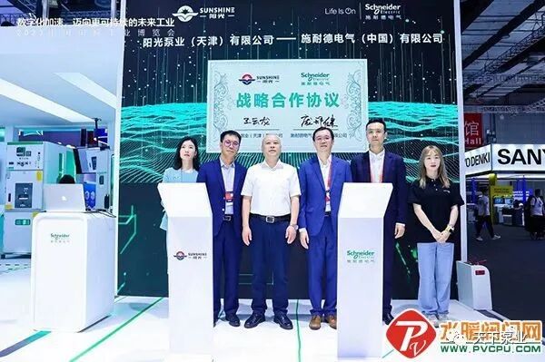 9月19日,在2023年第23届中国国际工业博览会现场,全球能源管理和自动化领域的数字化转型专家施耐德电气,与阳光泵业(天津)有限公司达成战略合作,双方将进一步聚焦高端智能泵设备的生产及运营,共同探索在数字化升级及创新产品层面的协作机会。