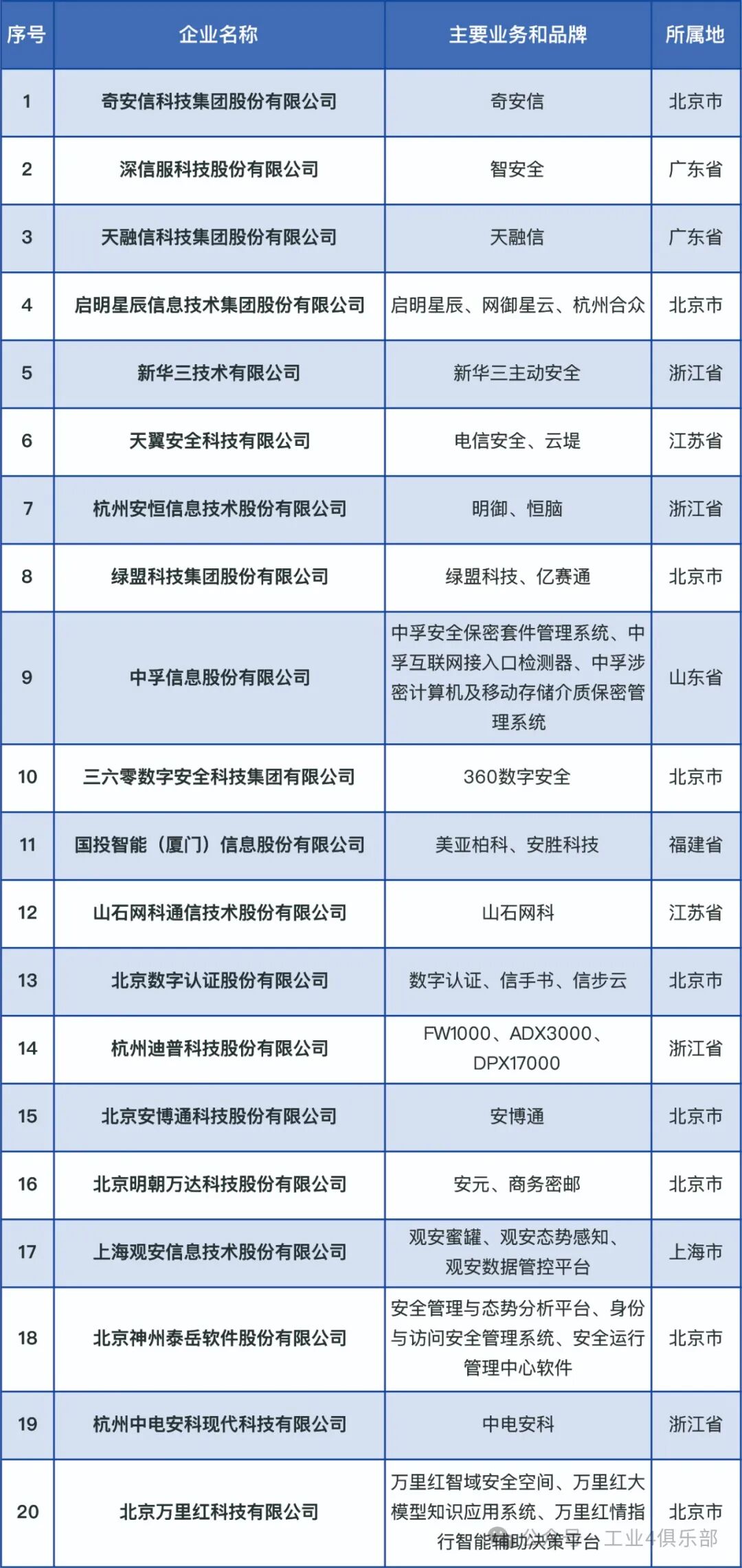 2024年中国网络安全前二十家企业名单