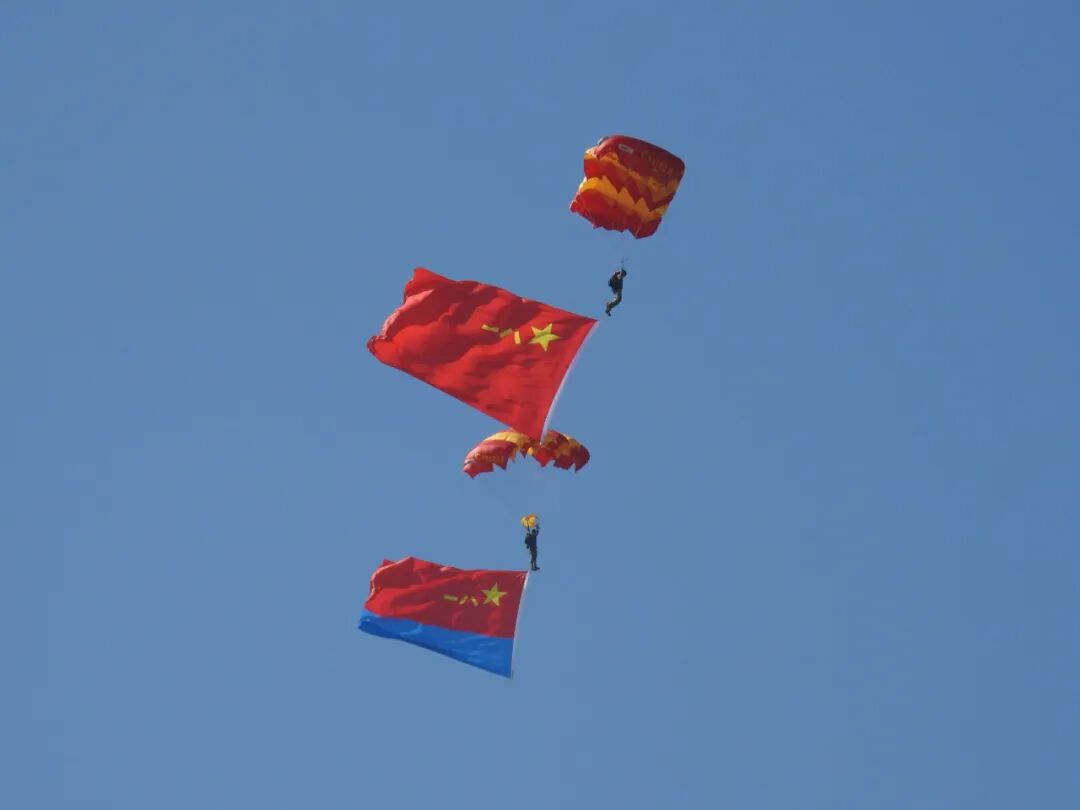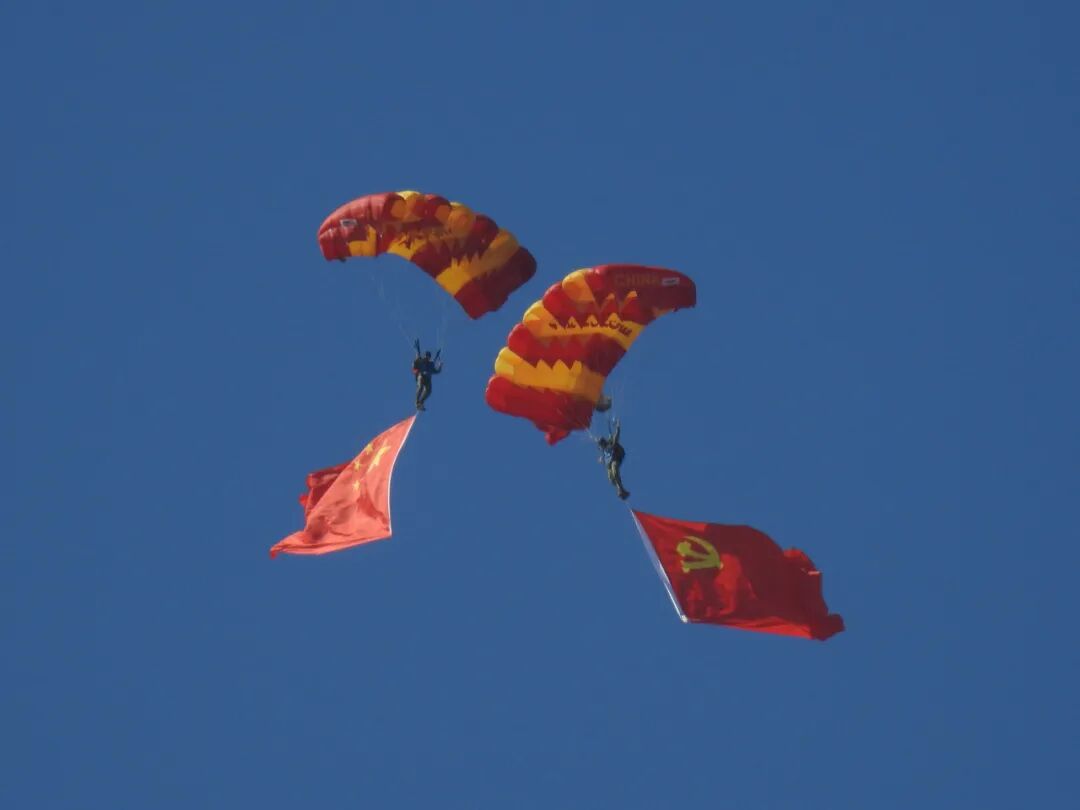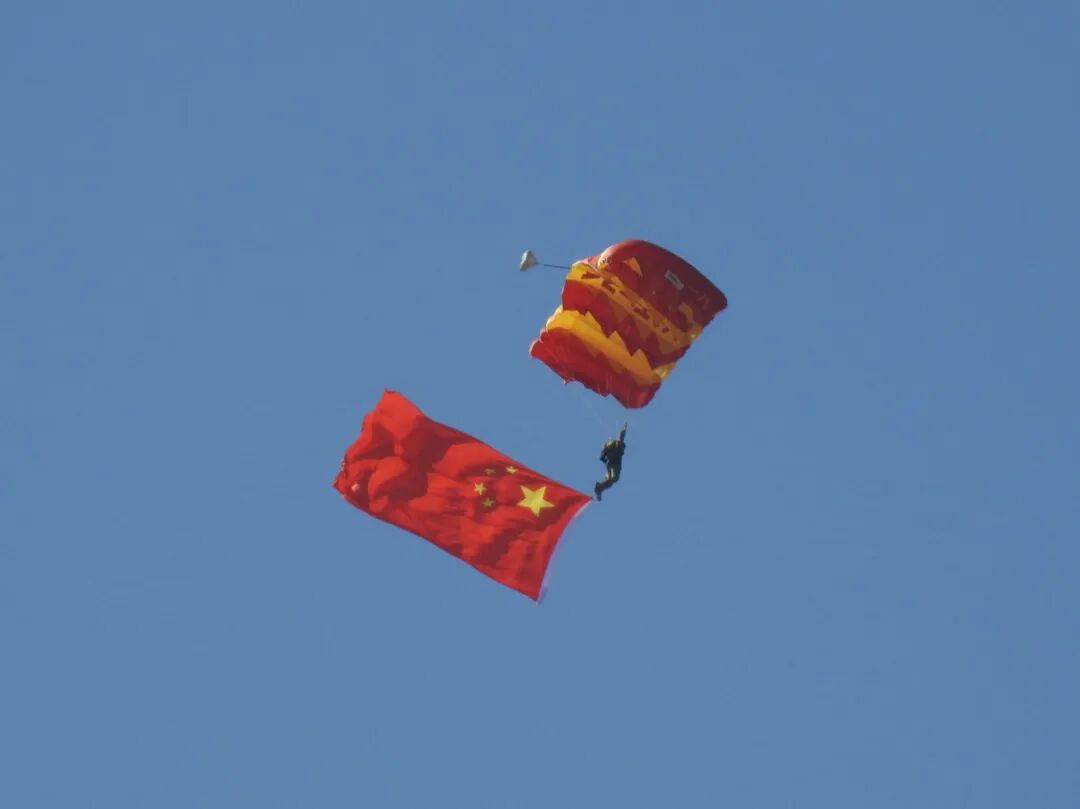 相比于2023年,2025年的长春航空展首次安排了预警机、轰炸机编队通场。运油-20A与歼-16以预加油楔队出现、轰-6双机编队通场、空警-500在4架歼-20的护卫下飞过,这不仅是大国重器的震撼展示,也是人民空军作战能力体系建设的可视化呈现。空中跳伞,以及多支飞行表演队的高超表演依旧令人叹为观止。随着2架运-12D先后起飞,“八一”、“蓝鹰”跳伞队携党旗、国旗、八一军旗和空军军旗先后跃出机舱,而其后多名跳伞员在高空打开横幅、标语。