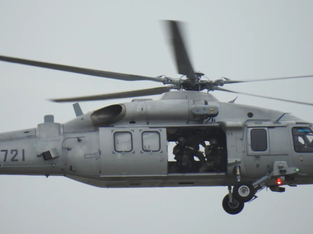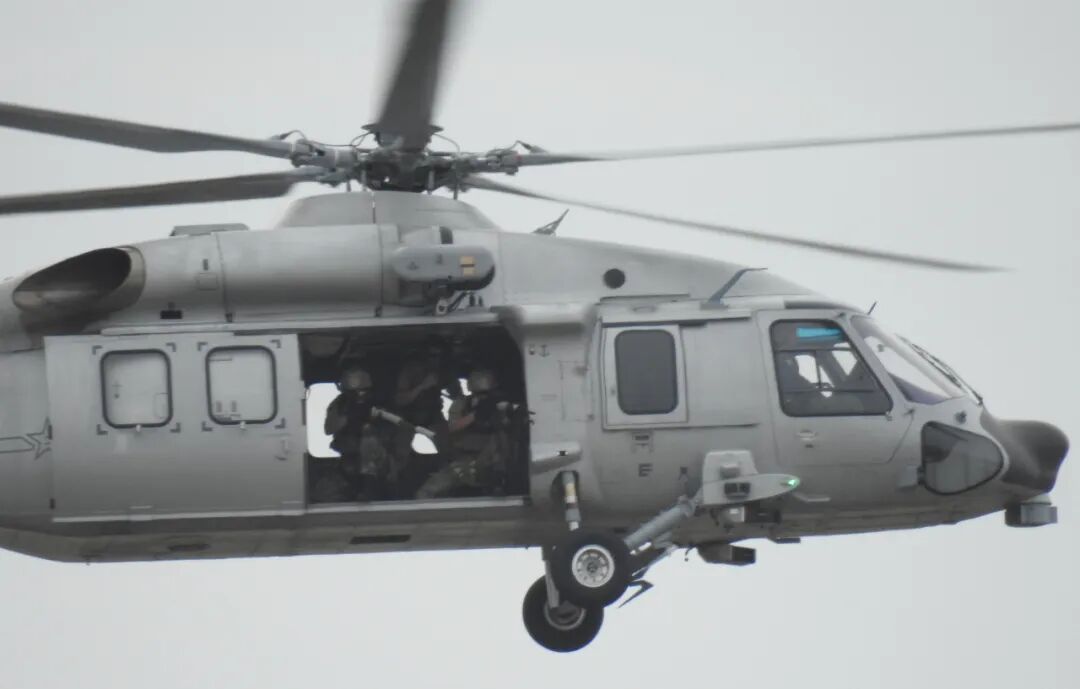来自西安空军飞行学院的歼-11BS | 两名女飞行员驾驶这架战机进行了精彩的飞行表演,她们是我国首批改装重型四代战斗机的女飞行员直-20KA直升机悬停投送、突击组破门解救“人质”,配合直-10K武装直升机空中掩护。由于没占到观演位置,我只能远远地看看直升机了。