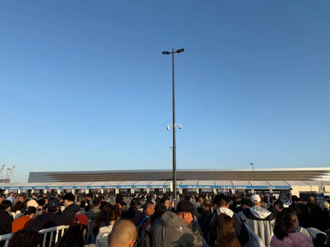 2025年9月长春航空展举办期间,天气明媚宜人,战机轰鸣刺破长空,为近百万热情观众和航空迷呈现了精彩的飞行表演。这是我第二次来长春赴“蓝天之约”,也是我参观过的各地各场飞行展中,组织最有序,交通保障最高效的一场展会。尽管本届航空展的室外静态展示与前年的展示装备大同小异,但新增的歼-20静态,以及因“打印”战绩重登C位的歼-10C连同霹雳-15导弹,都成为人气爆棚的打卡点。此次我的观展重心是飞行表演和新装备,因此本推文记录跳过了大部分的静态展示,对总体静态展示感兴趣的看官可翻看作者2023年的长春航空展观展记。长春人民广场的航展专线 | 中途不停车,直通航空展检票口,无需预约,例行扫公交车二维码即可早晨六点的检票口 | 为“抢”前排早起的观众,人尽管很多,但检票通过速度很快现场维持秩序的空军航空大学小兵哥 | 其他抢到前排观众架设好的相机。为了装备升级,我还需努力工作攒钱