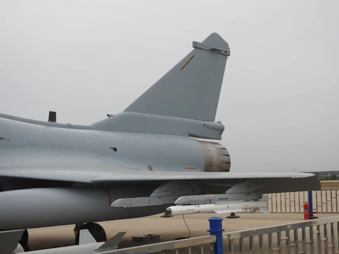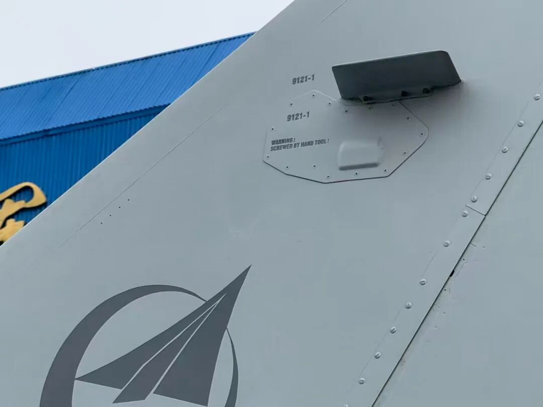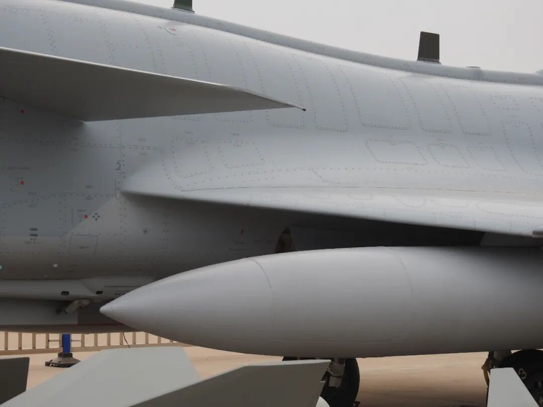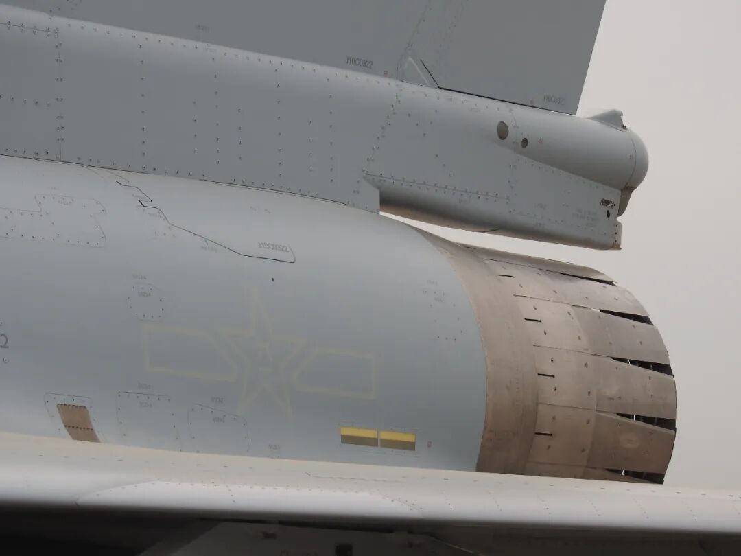 “枭龙”战斗机(5)| “枭龙”翼尖挂载的是霹雳-8近距格斗弹“枭龙”战斗机(6)| 航展上的这架飞机装备了俄罗斯RD-93涡扇发动机,也可能是国产版RD-93即涡扇-13,据称涡扇-13的最大加力推力达到9.5吨,强于原版RD-93发动机;垂尾顶部是电子战荚舱,使战斗机在静默状态下侦测敌方频谱信号,或许还具备一定的电子对抗能力“枭龙”战斗机(7)| 垂尾安定面上伸出的长方形“小刀片”是一种扰流片,是为了改善“枭龙”气动布局,提升气动弹性稳定性而设计的小部件“枭龙”战斗机(8)| 垂尾翼根处类似摄像头和镜头的装置为导弹逼近告警系统,常见的为红外告警系统、紫外告警系统或其它光电成像告警系统。尾翼方向舵下方是减速伞荚舱,以及相关锁止机构“枭龙”战斗机(9)| 发动机喷口有两层调节片,内调节片能够扩散或收敛喷口,外调节片辅助调节喷口大小并维持战机气动布局。一般来说,飞机低速飞行时,喷口收敛,高速飞行时,喷口扩散。如果外调节片能全向转动,就称为全向矢量喷口