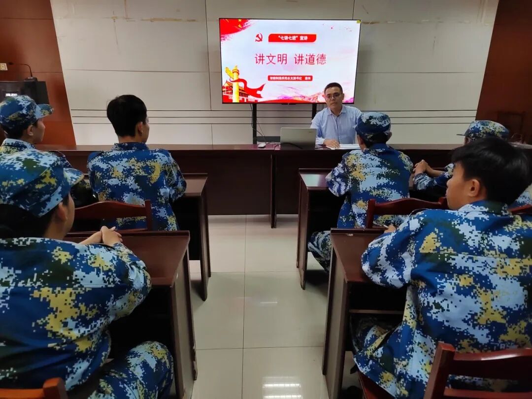 为引导全体师生追求高尚价值情操,以德润心、敦风化俗,着力将公民道德教育融入课堂、融入书本、融入实践,用榜样力量深入推动学校新时代公民道德建设,智能制造系开展“讲文明、讲道德”宣讲活动。系党总支副书记逯伟从什么是讲文明,什么是讲道德,讲文明、讲道德需要做到的几点要求三个方面对同学们进行了宣讲,他指出要做到讲文明讲道德一是要坚持社会主义核心价值体系;二是要有坚定的政治信仰;三是要突出抓好两大文明习惯的养成;四是注重践行“说文明话、做文明事、当文明人”三项文明行动;五是要经常反躬自省。通过宣讲活动进一步提高了新生对讲文明、讲道德的认识。