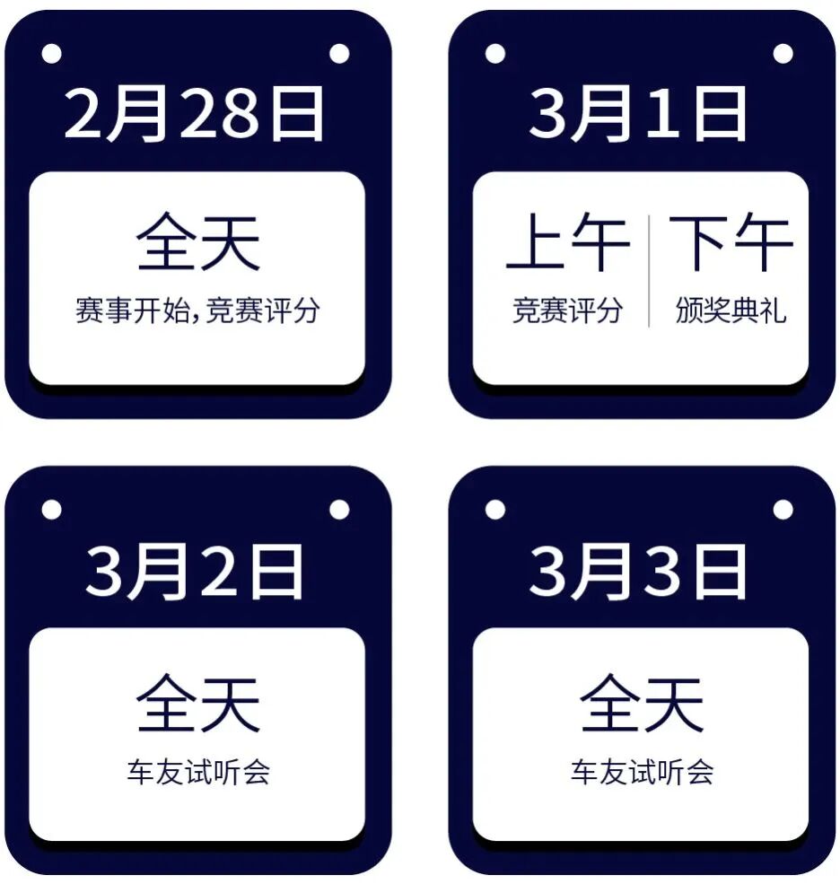 各个参赛选手、企业、车队等需按照主办方要求,2025年2月15日17:00之前提交《参赛车辆改装配置清单》,逾期提交将扣除10%的评分成绩。
