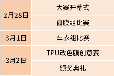窗膜组、车衣组各决出冠、亚、季军,赢取荣誉现金大奖,TPU改色膜创意赛的每名选手可获得奖牌一枚,激励选手展现最佳技术水平。