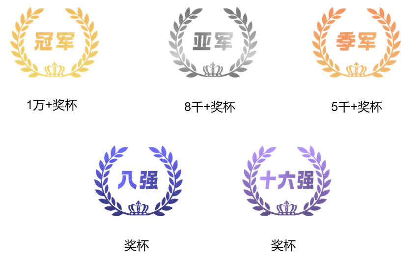 ● 限定组:冠军1万+奖杯,亚军8千+奖杯, 季军5千+奖杯,8强奖杯,16强奖杯