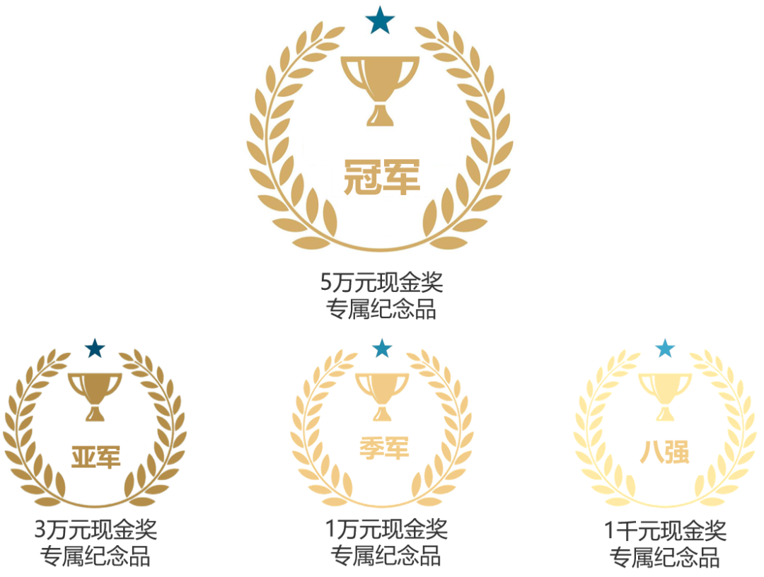 ●无限定组:冠军10万+奖杯,亚军3万+奖杯,季军2万+奖杯,8强1千+奖杯,16强奖杯