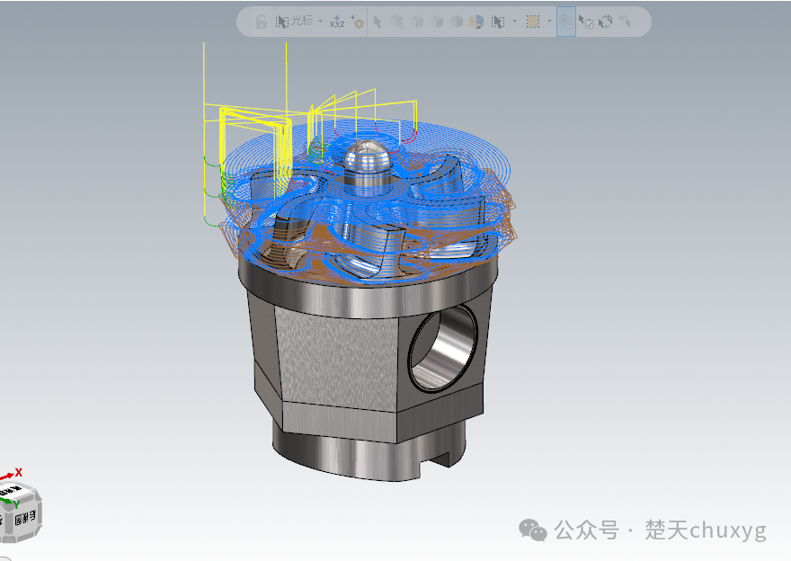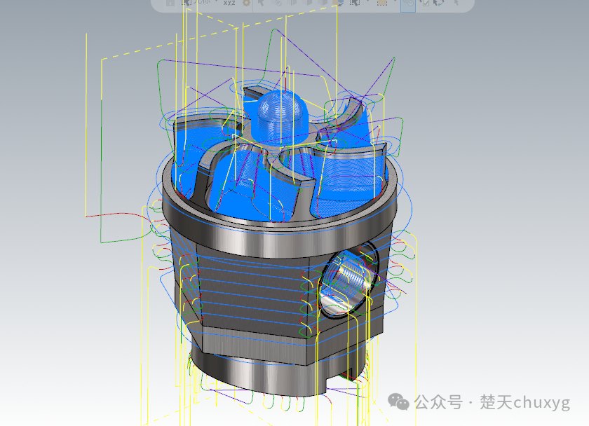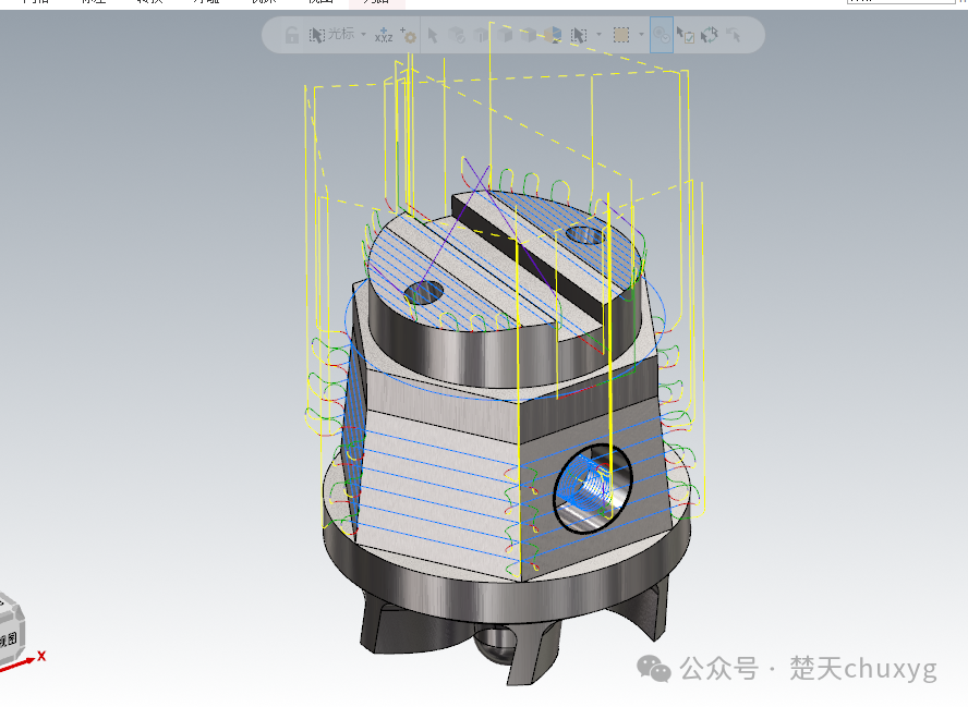 经常有朋友找我要五轴编程视频教程,没有时间搞这个,费脑费时,五轴刀路一般不会一次到位,刀路出来后,还要根据五轴机床的特点进行优化刀路和刀轴的,一些想学五轴编程的朋友用三轴的学习方法来学习五轴编程,或没有五轴上机的机会来学习多轴编程,没有上升的空间。有时候,你想要的图档往往是别人正在生产或未解密的图档,作者遵守职业道德,未解密图档不会分享。如果你在多轴编程有疑难的话,可私信联系我 ,协助你。