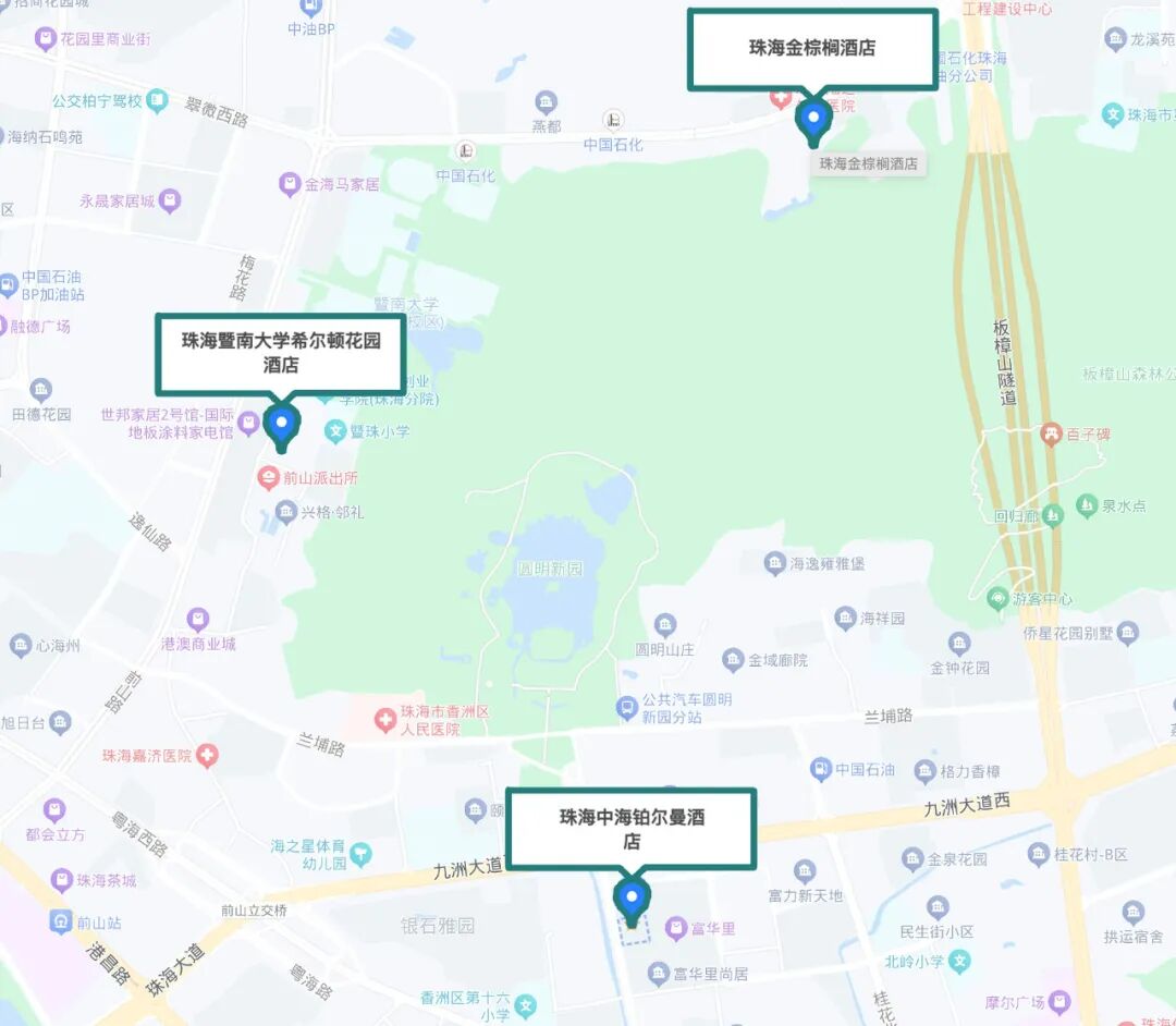2.地点:暨南大学(珠海)学术交流中心/珠海暨南大学希尔顿花园酒店
