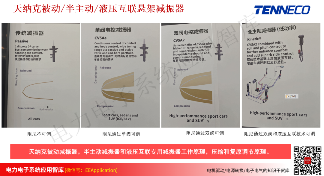 在本次展览会上,天纳克相关的产品也一并都展示了实物(被动/半主动/液压互联悬架减振器),如下图所示。