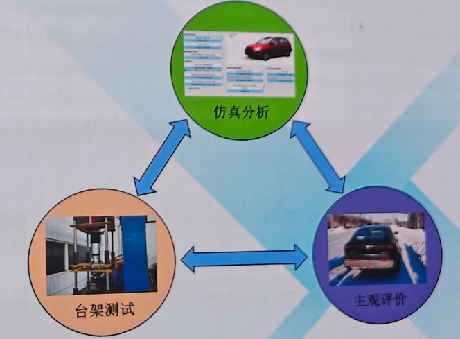 悬架动力学分析中,说明了主动悬架开发主要通过仿真分析(用于算法和模型前期验证,包括四分之一车辆模型仿真和整车动力学仿真),台架测试(用于主动悬架的外特性测试,响应时间测试,性能标定和算法验证)和主观评价(用于主动悬架整车参数标定,R&H性能评估)三种方式,同时三种方法贯穿于主动悬架系统开发的各个阶段。