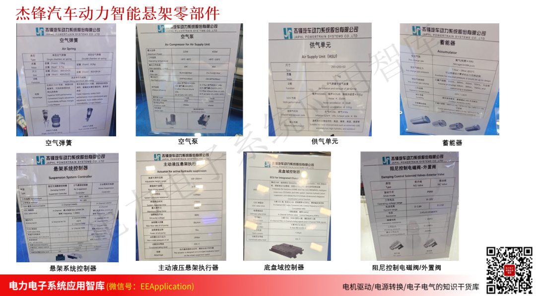 杰锋汽车动力系统股份有限公司致力于CDC悬架系统、空气弹簧悬架系统和主动液压悬架系统零部件开发,为客户提供从系统到零件级的技术服务和产品支持。本次展会中展出了电磁阀(包括内置阀,外置阀,分配阀,排气阀,空簧刚度阀,姿态阀和液压刚度阀等),蓄能器,空气弹簧产品及调校标定,半主动悬架控制器,算法和软件,以及主动液压悬架系统等。