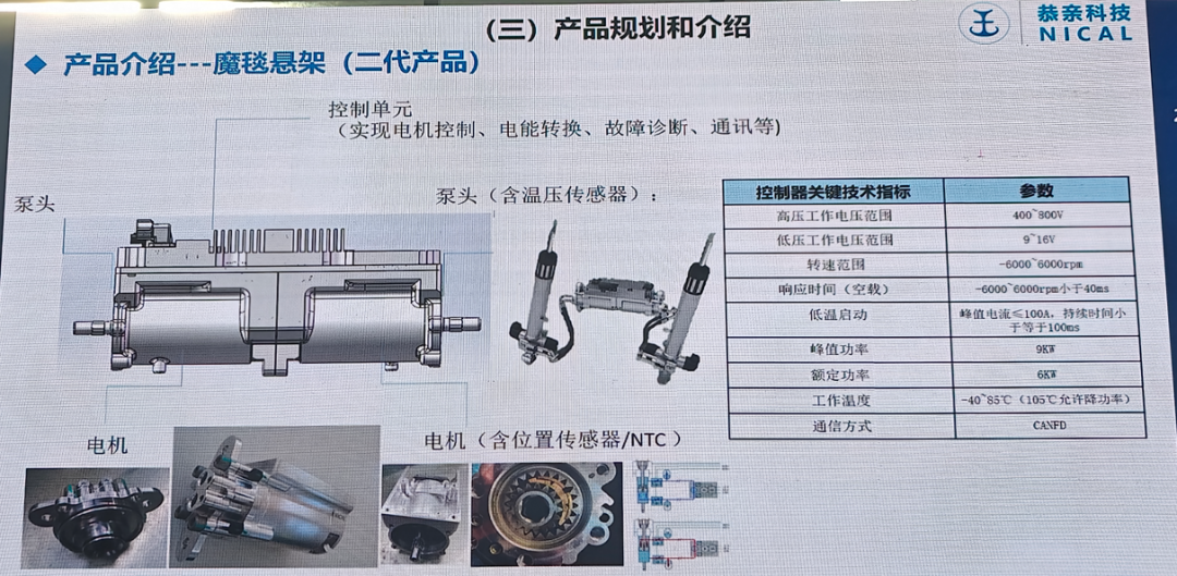 虽然没有展出高压液压泵产品,对于全主动减振器进行了介绍,孔辉科技采用了创新性的倒置设计和强壮铝制结构设计主动减振器,对于产品的耐久可靠性提出了很多新的设计方案。
